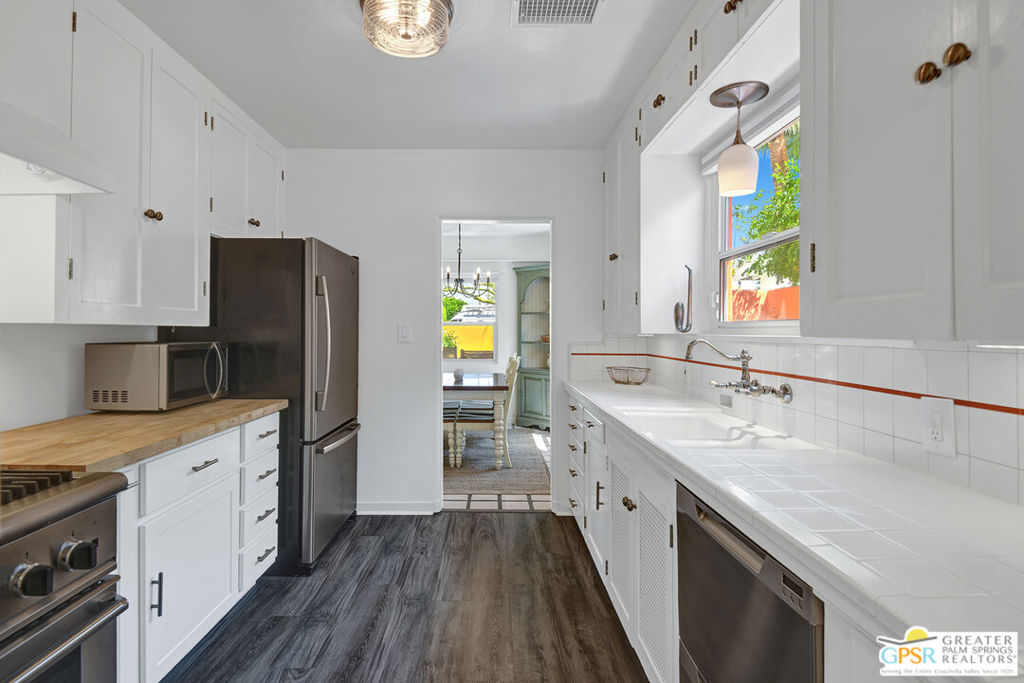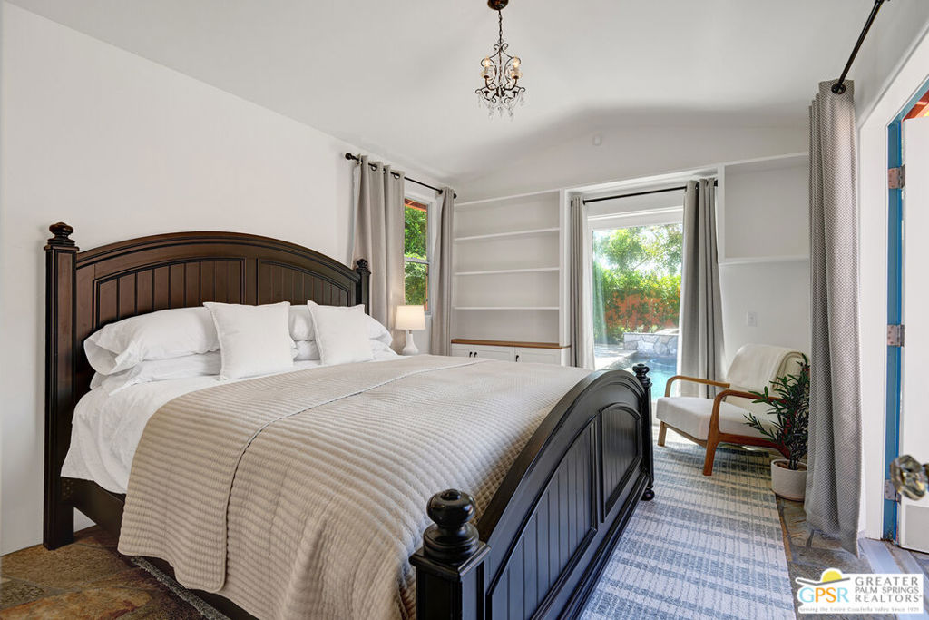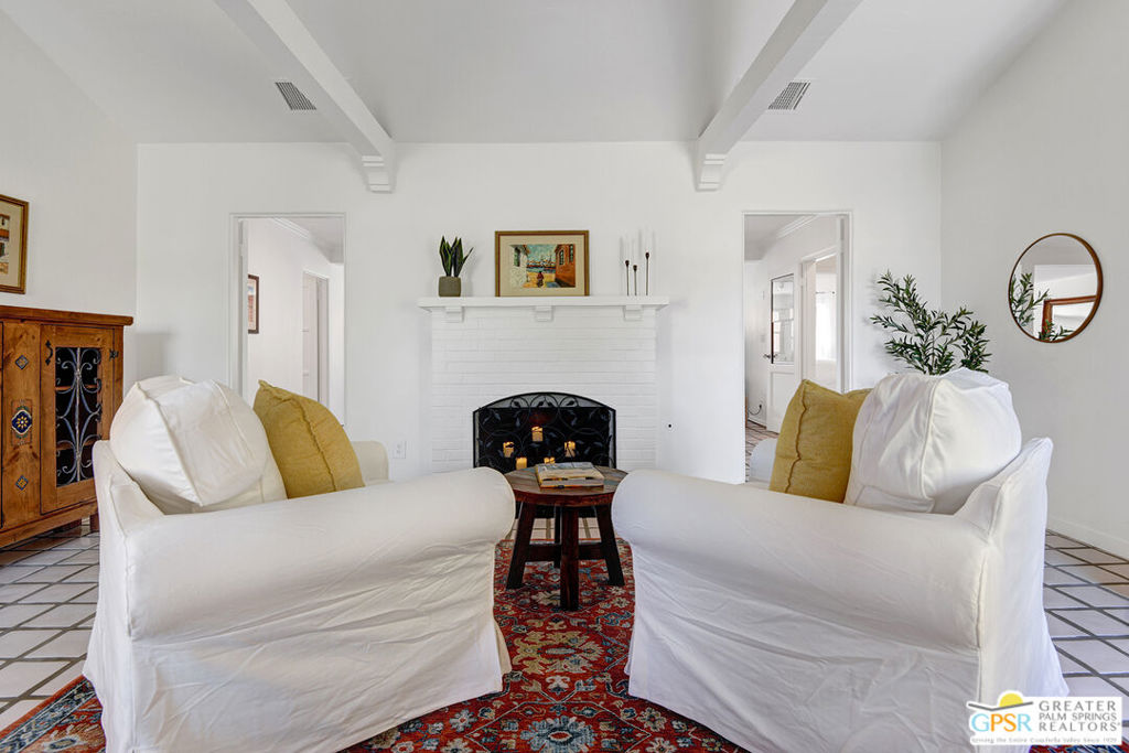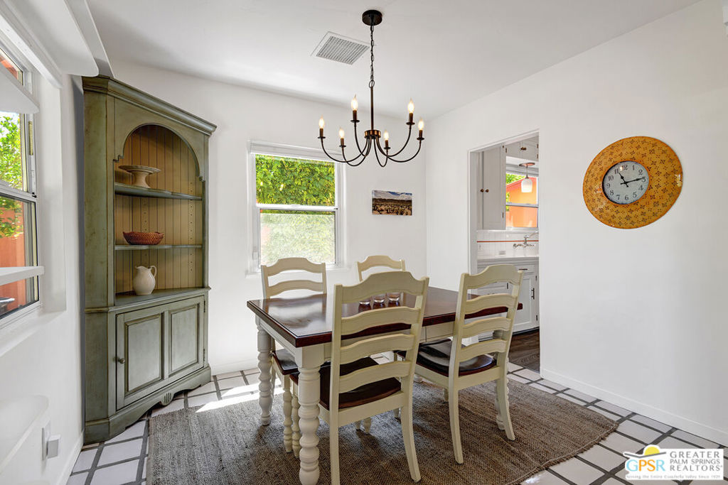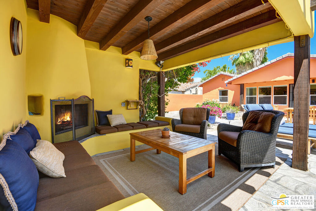 Accepting back-up Offers. Welcome to your dream oasis at 1165 E El Alameda, located in the Movie Colony East neighborhood in the heart of vibrant Palm Springs, CA. With easy access to Ruth Hardy Park and downtown, this historic single-family home offers a perfect blend of desert elegance and comfort. Spanning 1,916 square feet with 3 spacious bedrooms and 2.5 luxurious bathrooms, this fully furnished residence is an ideal retreat for those seeking a blend of relaxation and sophistication. Upon entering the property, you are greeted by a private courtyard that offers a tranquil spot with amazing mountain views. The living space has a vaulted and beamed ceiling and is enhanced by a cozy fireplace, providing an ideal spot for intimate gatherings or tranquil evenings. A separate dining room offers the perfect spot for entertaining. The modern kitchen is well-appointed and ready for culinary adventures. A large den area is great for the family and provides views and access to the backyard. The private backyard is an oasis featuring a heated pool and spa, perfect for unwinding under the sun or entertaining guests. The pool is equipped with swim jets allowing you to complete your workout without leaving home. The outdoor area is beautifully landscaped and a shaded cabana enhances the area for lounging and relaxing. The property's ample garage and private parking provide ease and security with gated entry. With its combination of elegance and historic amenities, this home offers a unique opportunity to indulge in the quintessential Palm Springs lifestyle. Offered turnkey furnished and NO HOA, don't miss your chance to make this exceptional property your own personal paradise.