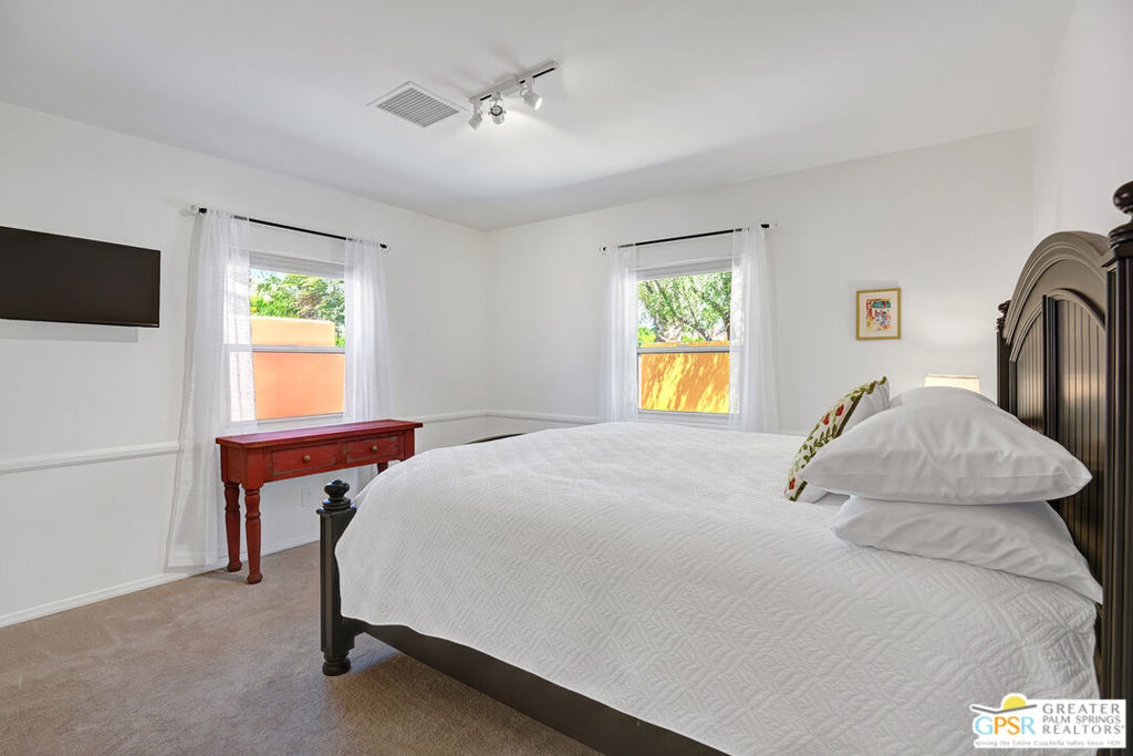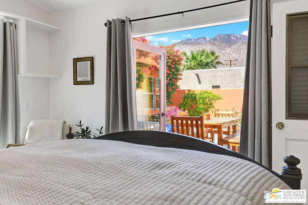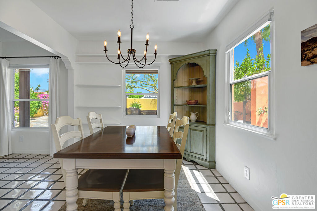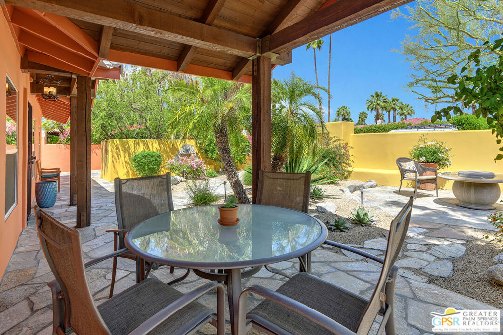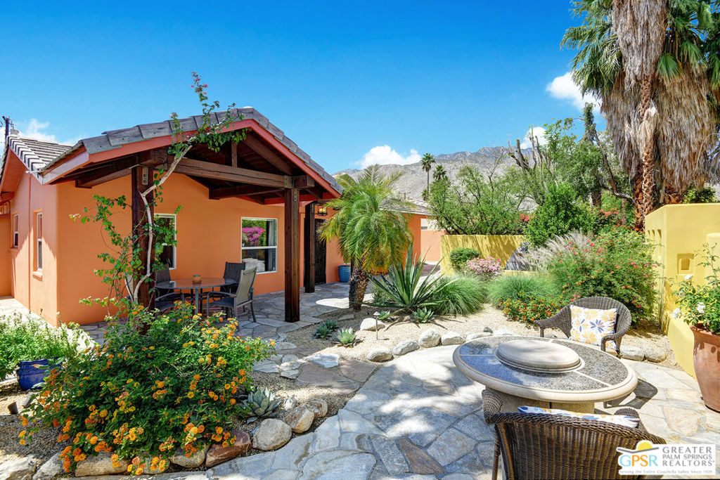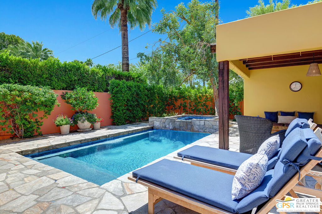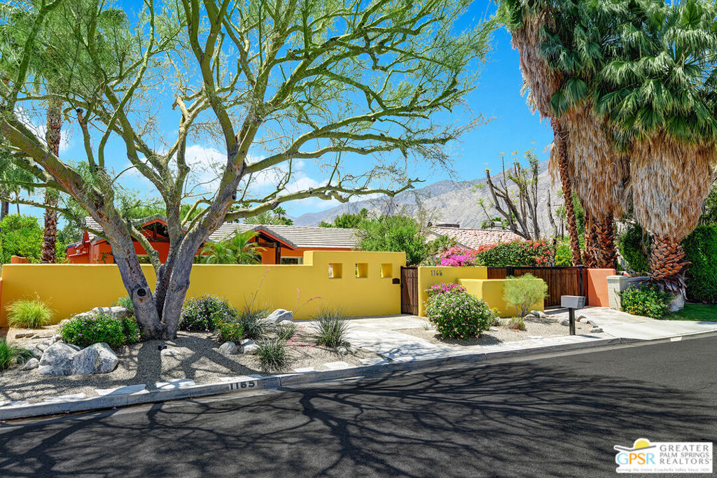 Welcome to your dream oasis at 1165 E El Alameda, located in the Movie Colony East neighborhood in the heart of vibrant Palm Springs, CA. With easy access to Ruth Hardy Park and downtown, this historic single-family home offers a perfect blend of desert elegance and comfort. Spanning 1,916 square feet with 3 spacious bedrooms and 2.5 luxurious bathrooms, this fully furnished residence is an ideal retreat for those seeking a blend of relaxation and sophistication. Upon entering the property, you are greeted by a private courtyard that offers a tranquil spot with amazing mountain views. The living space has a vaulted and beamed ceiling and is enhanced by a cozy fireplace, providing an ideal spot for intimate gatherings or tranquil evenings. A separate dining room offers the perfect spot for entertaining. The modern kitchen is well-appointed and ready for culinary adventures. A large den area is great for the family and provides views and access to the backyard. The private backyard is an oasis featuring a heated pool and spa, perfect for unwinding under the sun or entertaining guests. The pool is equipped with swim jets allowing you to complete your workout without leaving home. The outdoor area is beautifully landscaped and a shaded cabana enhances the area for lounging and relaxing. The property's ample garage and private parking provide ease and security with gated entry. With its combination of elegance and historic amenities, this home offers a unique opportunity to indulge in the quintessential Palm Springs lifestyle. Offered turnkey furnished and NO HOA, don't miss your chance to make this exceptional property your own personal paradise.