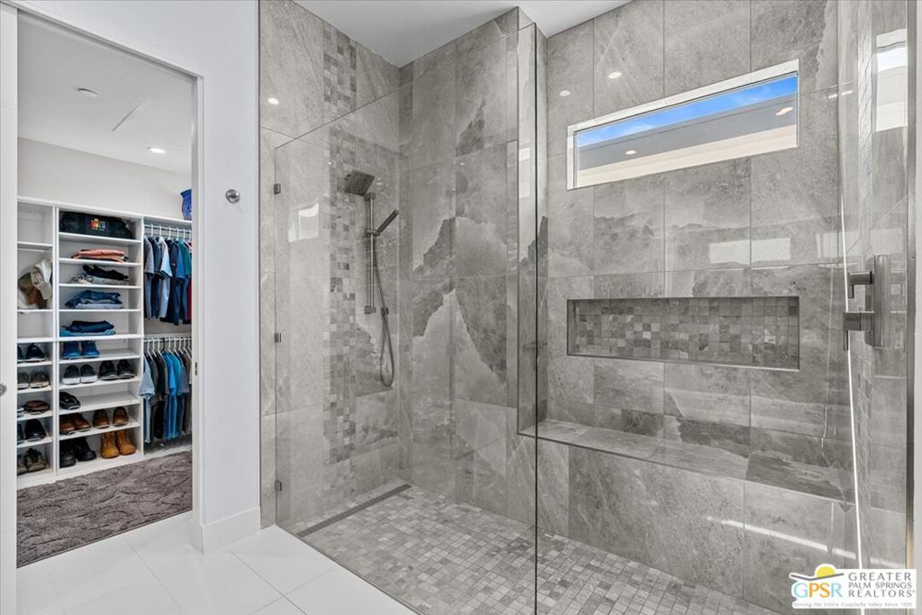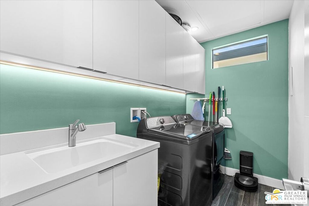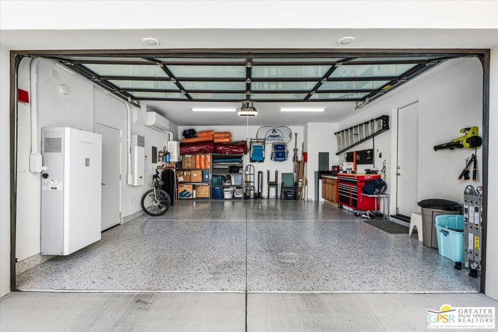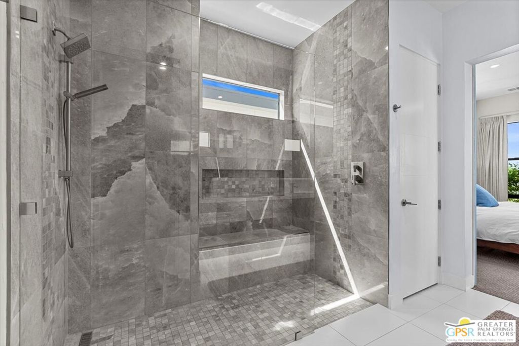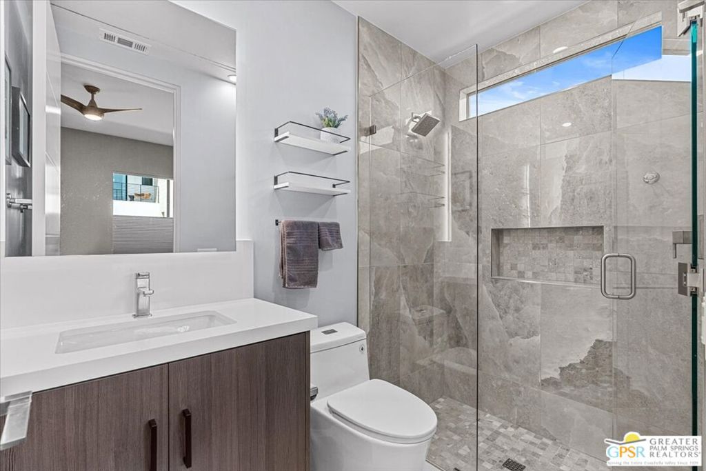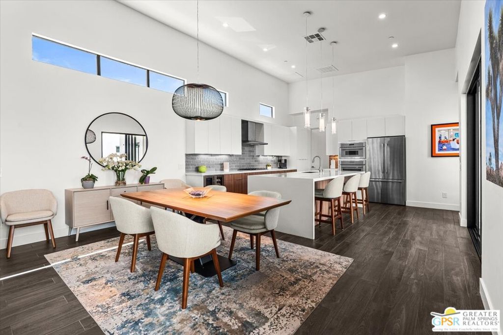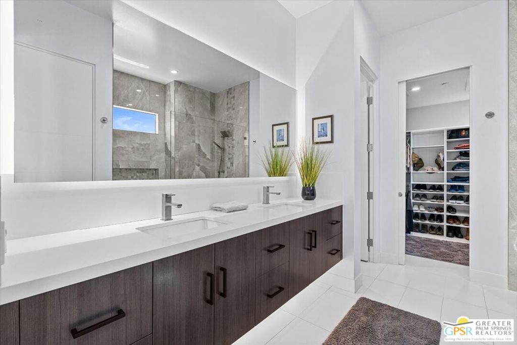 Located in the heart of vibrant Palm Springs, this modern home in the gated community of Vue is your perfect desert retreat. With 3 spacious bedrooms and 3 beautifully upgraded baths, this property is packed with luxurious features that elevate everyday living. Step inside to discover a sleek, open layout boasting a gourmet kitchen equipped with upgraded appliances, a gas fireplace for cozy evenings, and high-tech touches like electronic blinds, drapes, and a Sonos surround sound system. Ceiling fans throughout and a custom-built primary closet add both comfort and style. Outside, soak up the desert sunshine in your private oasis with dining, seating and lounging areas. The saltwater pool and spa, complete with water features and a pebble tech finish, are complemented by a Cool-Tech patio and a built-in BBQ station perfect for entertaining or unwinding under the stars. Additional perks include 34 owned solar panels with a backup battery, a full house water filtration and purification system, plus an air-conditioned, epoxy-floored 2-car garage. For added peace of mind, the home is equipped with an alarm system, cameras, a DoorBird entry system and whole house surge protection. This is more than just a home; it's a lifestyle. Don't miss your chance to own this stunning Palm Springs gem!