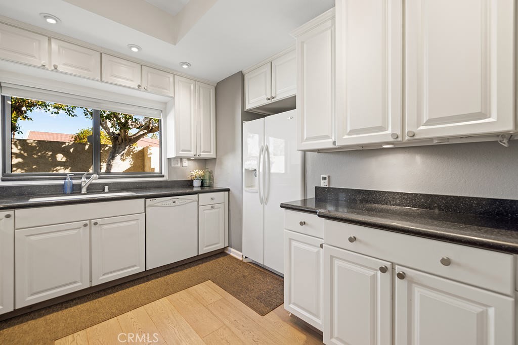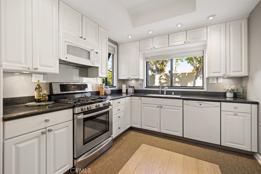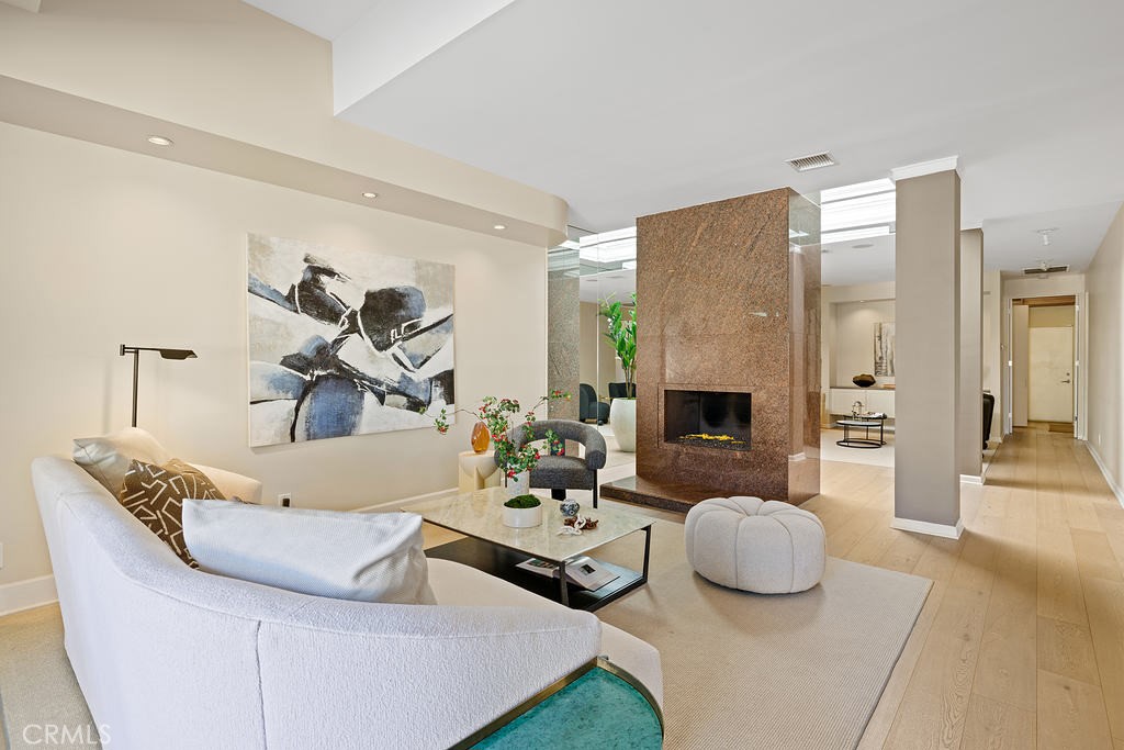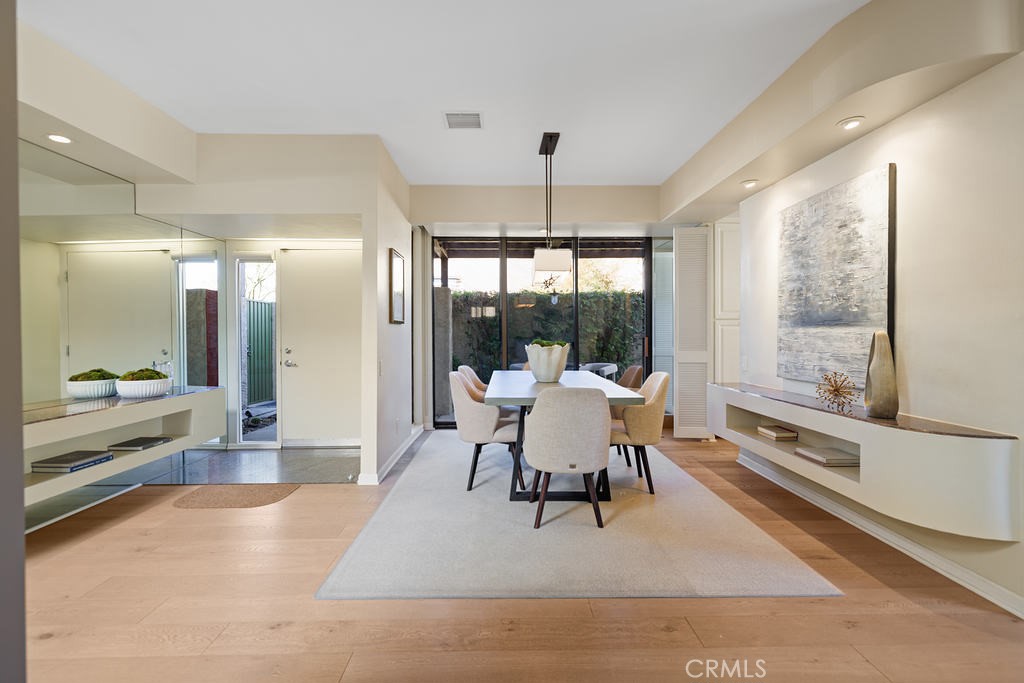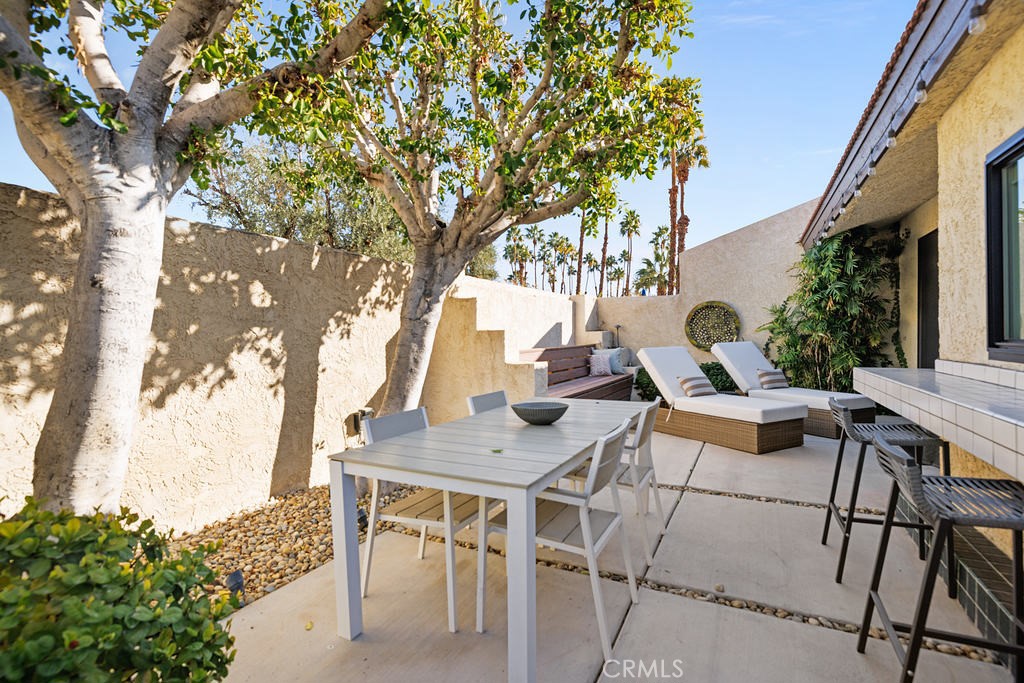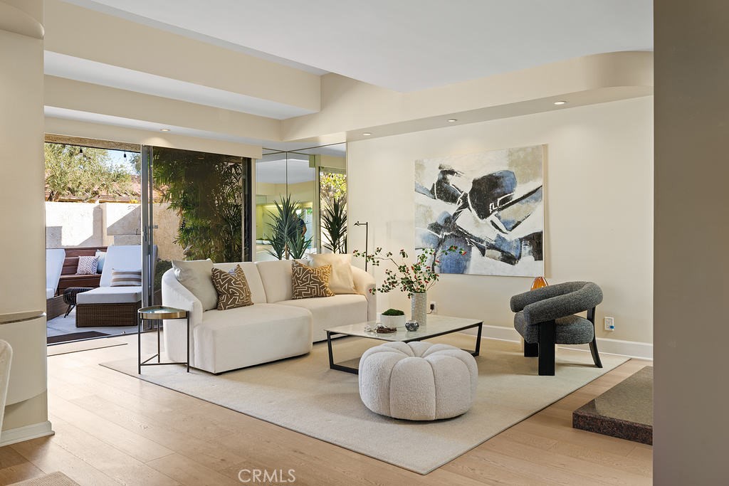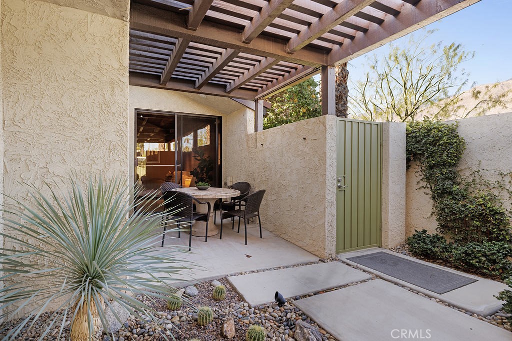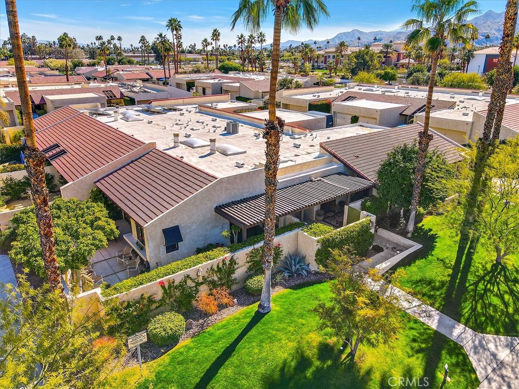 This beautifully designed single-story condo offers the perfect blend of architectural charm, designer finishes, and breathtaking mountain views. A rare find, this home includes an extended double garage, providing ample storage and convenience. Step inside to discover engineered wood floors throughout the kitchen and living spaces, complemented by elegant wool area rugs. The light-filled living room boasts soaring ceilings, a gas fireplace with granite surround, an adjacent wet bar, and direct access to a spacious wrap-around patio with a sturdy pergola--perfect for entertaining. A separate den/media room features a skylight with a motorized shade and access to a third bathroom.