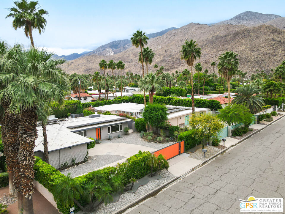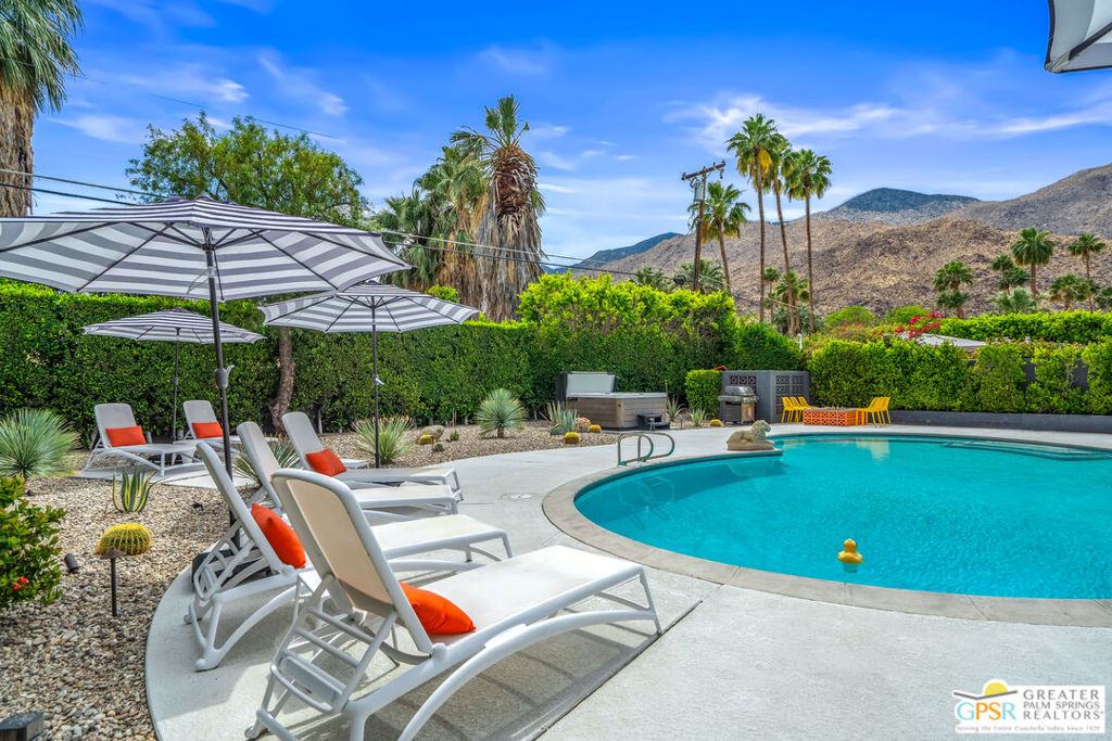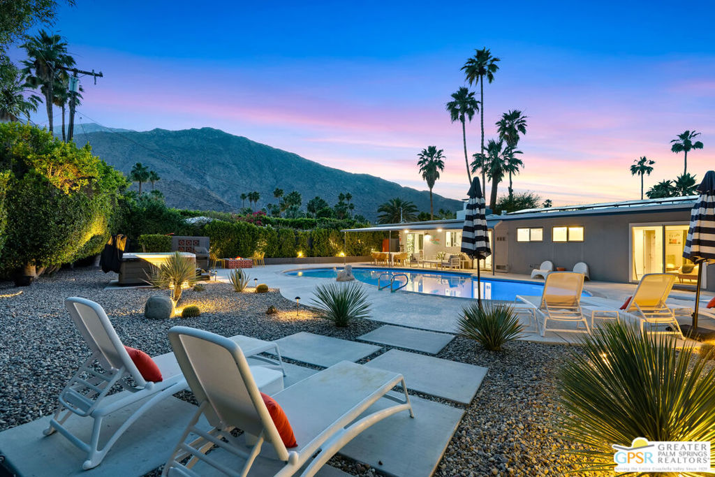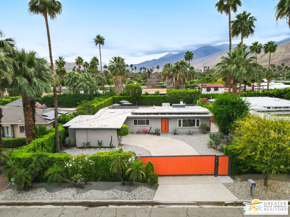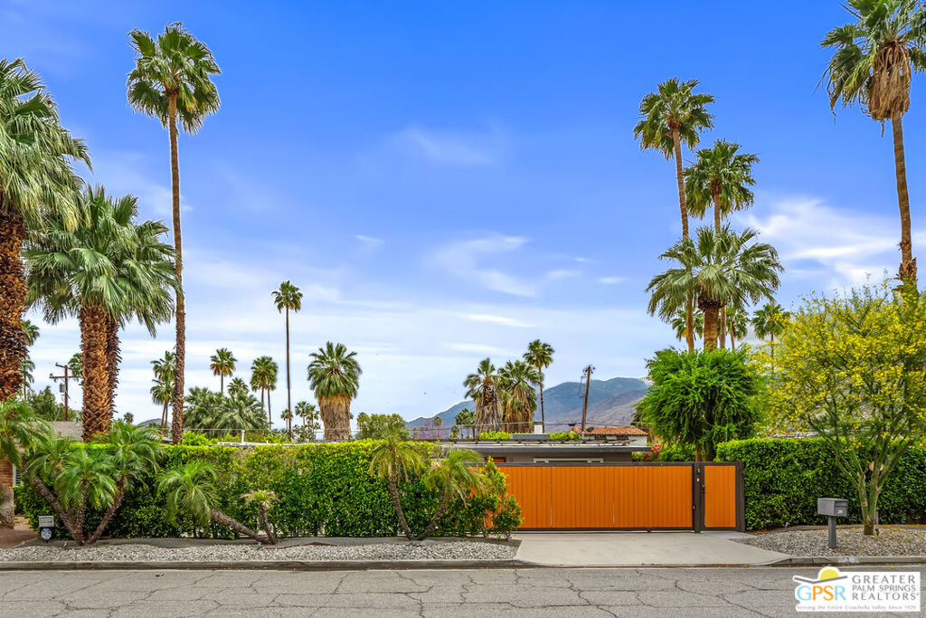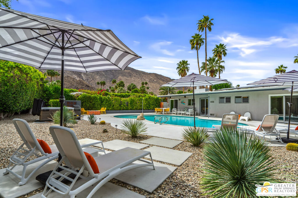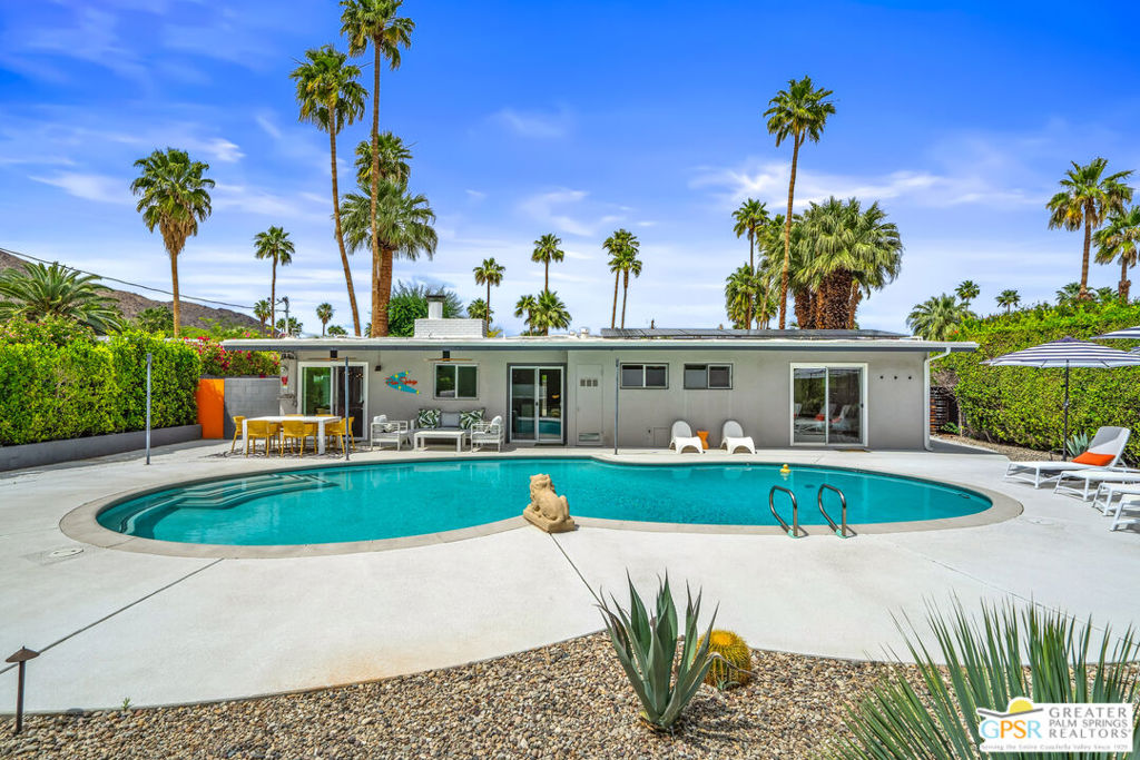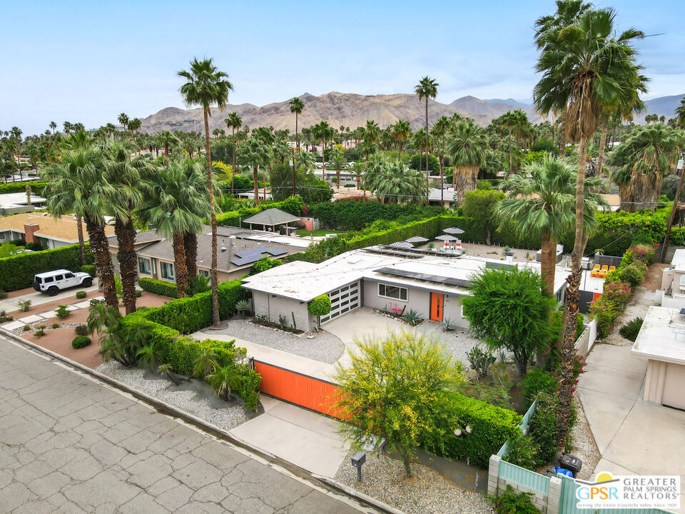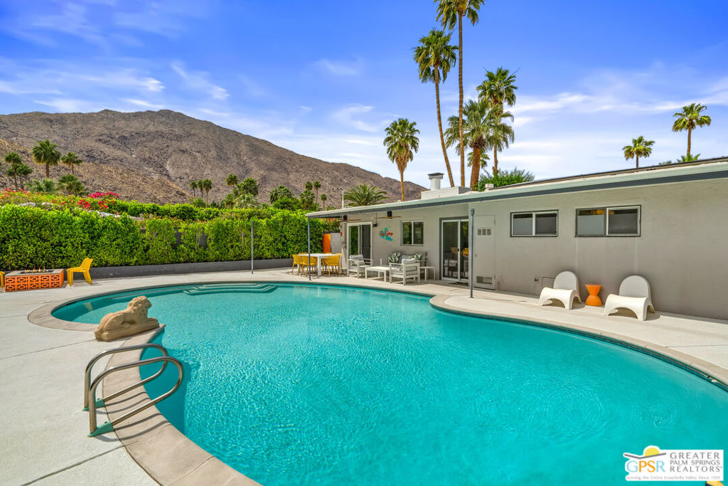 Looking for the perfect ready to enjoy, furnished Palm Springs home? Recently renovated, furnishings included and great short term rental potential! Welcome to 281 Ocotillo Avenue, where mid-century allure perfectly blends with modern luxury in the vibrant heart of Palm Springs! Discreetly hidden behind a privacy hedge on a tranquil street in the coveted Tahquitz River Estates neighborhood, this gated home blends architectural character with contemporary sophistication. This three-bedroom, two-bathroom atomic-ranch is an oasis of comfort and style. Picture yourself in the open living area, where iconic mid-century details like the stunning brick fireplace and expansive windows create a warm, inviting atmosphere perfect for cocktail parties or a simple quiet evening unwinding at home. The sleek kitchen features premium appliances with plenty of storage and counter space, perfect for culinary enthusiasts. The primary suite is your private retreat, offering breathtaking views of yard, pool and mountains and its en suite bath boasts a spa-like shower. The two spacious guest bedrooms are equally charming, sharing a beautifully updated guest bathroom. Outside, enjoy the large pool and multiple lounging and dining areas all with stunning mountain views or sit by the outdoor fire pit under the starry night. Modern upgrades abound, including leased solar to help keep your monthly costs to a minimum. As a bonus, over $48k in designer furnishings are included in the sale, allowing you to easily move in and start enjoying your new lifestyle immediately. This home can easily be used as an investment property too since short term vacation rentals are still allowed in this neighborhood. Just minutes from the best dining and shopping in town this home invites you to experience the ultimate in modern living and take advantage of everything this Palm Springs gem has to offer.