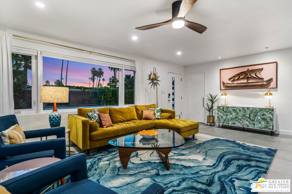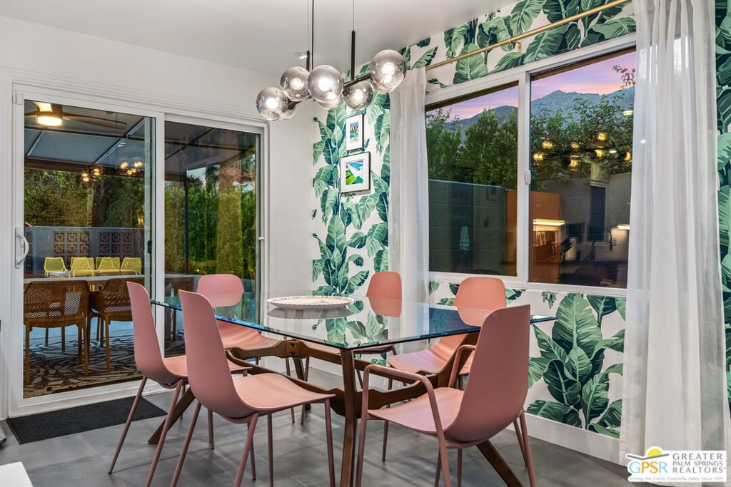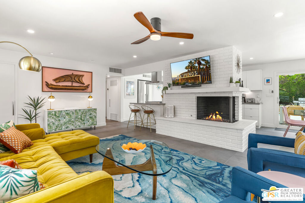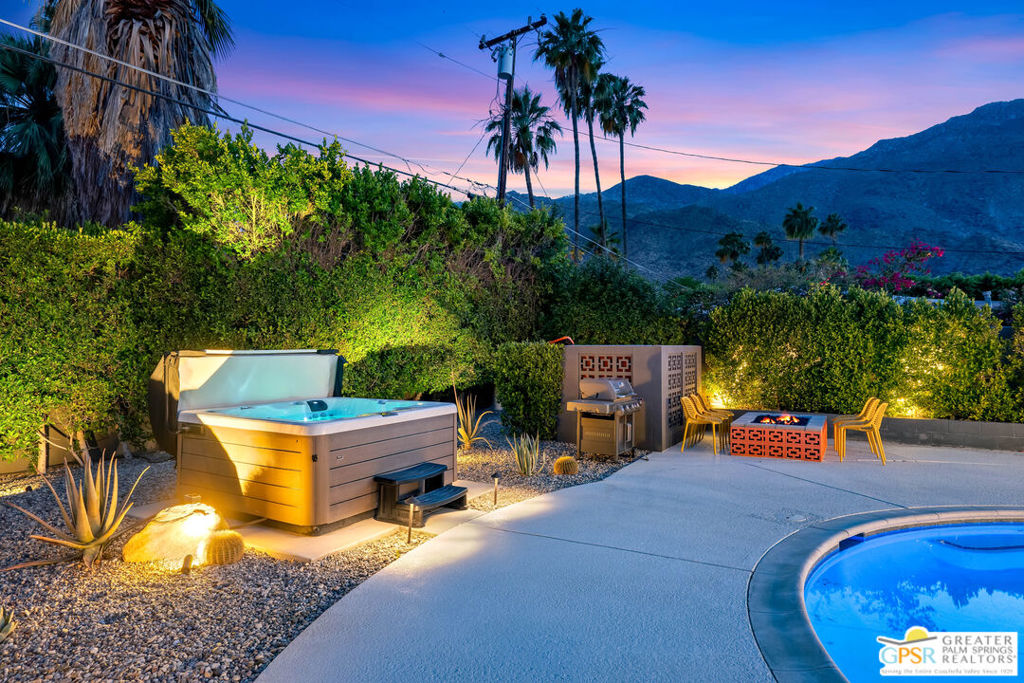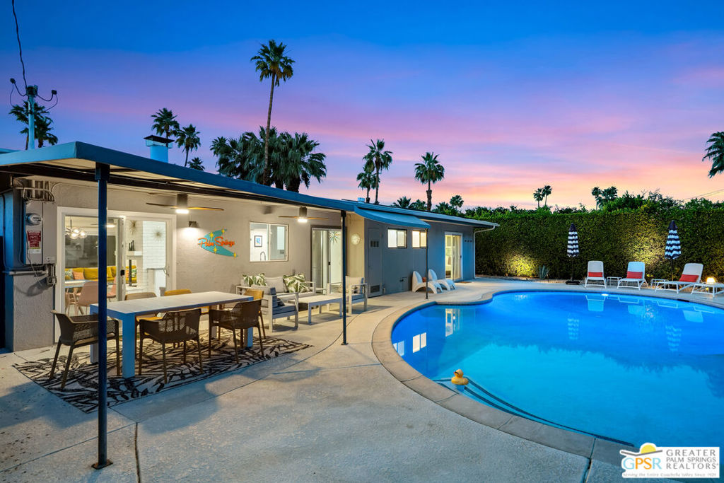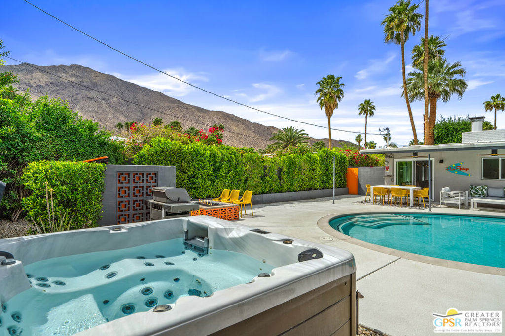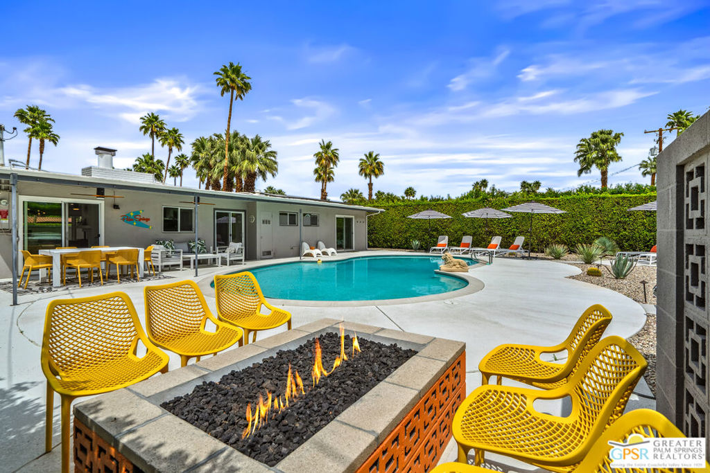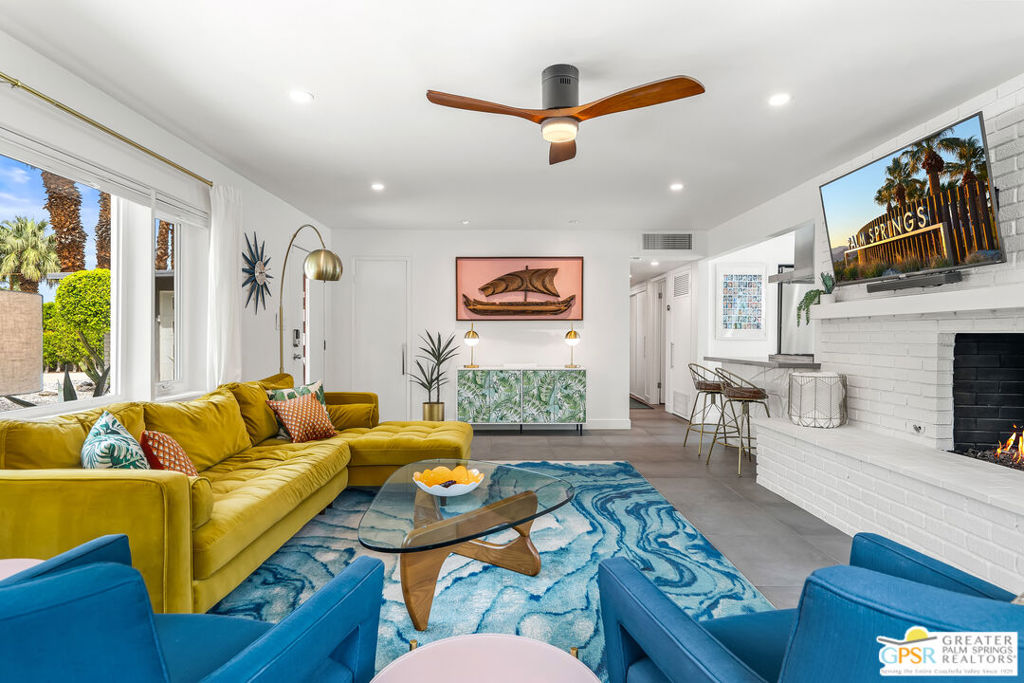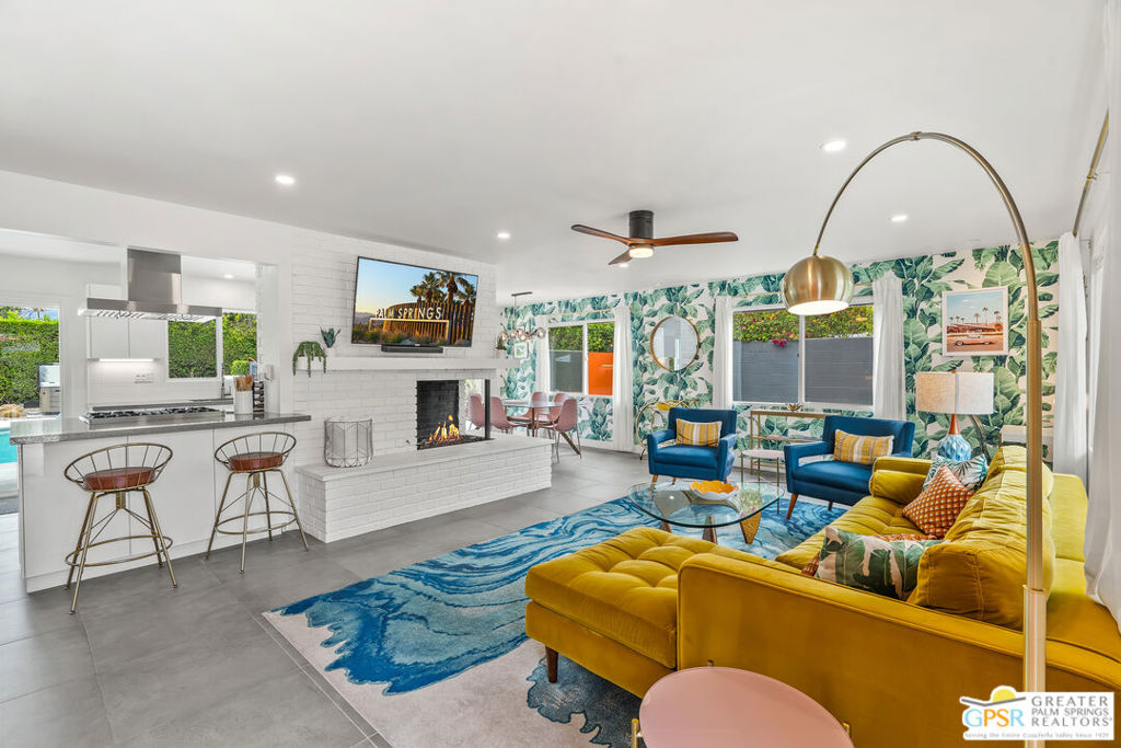 Looking for the perfect ready to enjoy, furnished Palm Springs home? Recently renovated, furnishings included and great short term rental potential! Welcome to 281 Ocotillo Avenue, where mid-century allure perfectly blends with modern luxury in the vibrant heart of Palm Springs! Discreetly hidden behind a privacy hedge on a tranquil street in the coveted Tahquitz River Estates neighborhood, this gated home blends architectural character with contemporary sophistication. This three-bedroom, two-bathroom atomic-ranch is an oasis of comfort and style. Picture yourself in the open living area, where iconic mid-century details like the stunning brick fireplace and expansive windows create a warm, inviting atmosphere perfect for cocktail parties or a simple quiet evening unwinding at home. The sleek kitchen features premium appliances with plenty of storage and counter space, perfect for culinary enthusiasts. The primary suite is your private retreat, offering breathtaking views of yard, pool and mountains and its en suite bath boasts a spa-like shower. The two spacious guest bedrooms are equally charming, sharing a beautifully updated guest bathroom. Outside, enjoy the large pool and multiple lounging and dining areas all with stunning mountain views or sit by the outdoor fire pit under the starry night. Modern upgrades abound, including leased solar to help keep your monthly costs to a minimum. As a bonus, over $48k in designer furnishings are included in the sale, allowing you to easily move in and start enjoying your new lifestyle immediately. This home can easily be used as an investment property too since short term vacation rentals are still allowed in this neighborhood. Just minutes from the best dining and shopping in town this home invites you to experience the ultimate in modern living and take advantage of everything this Palm Springs gem has to offer.