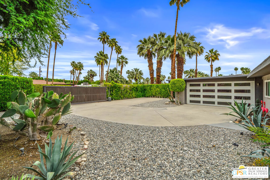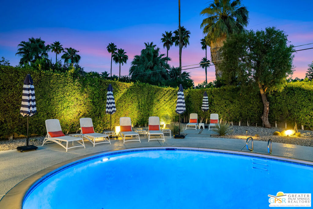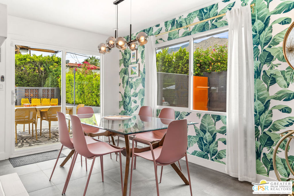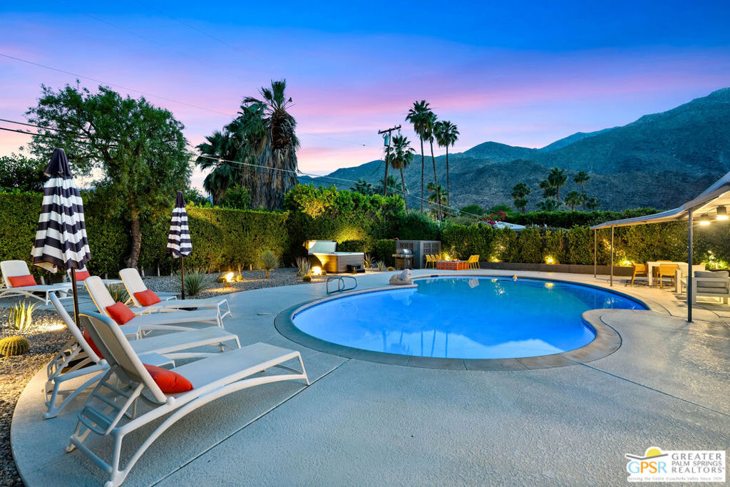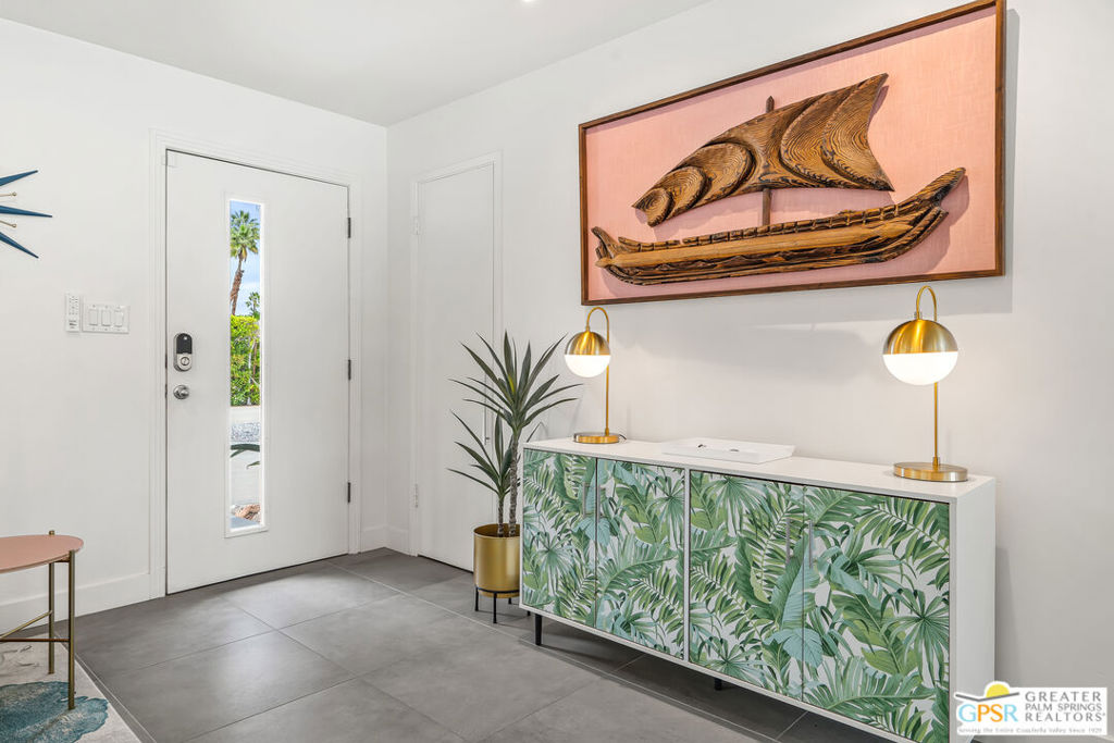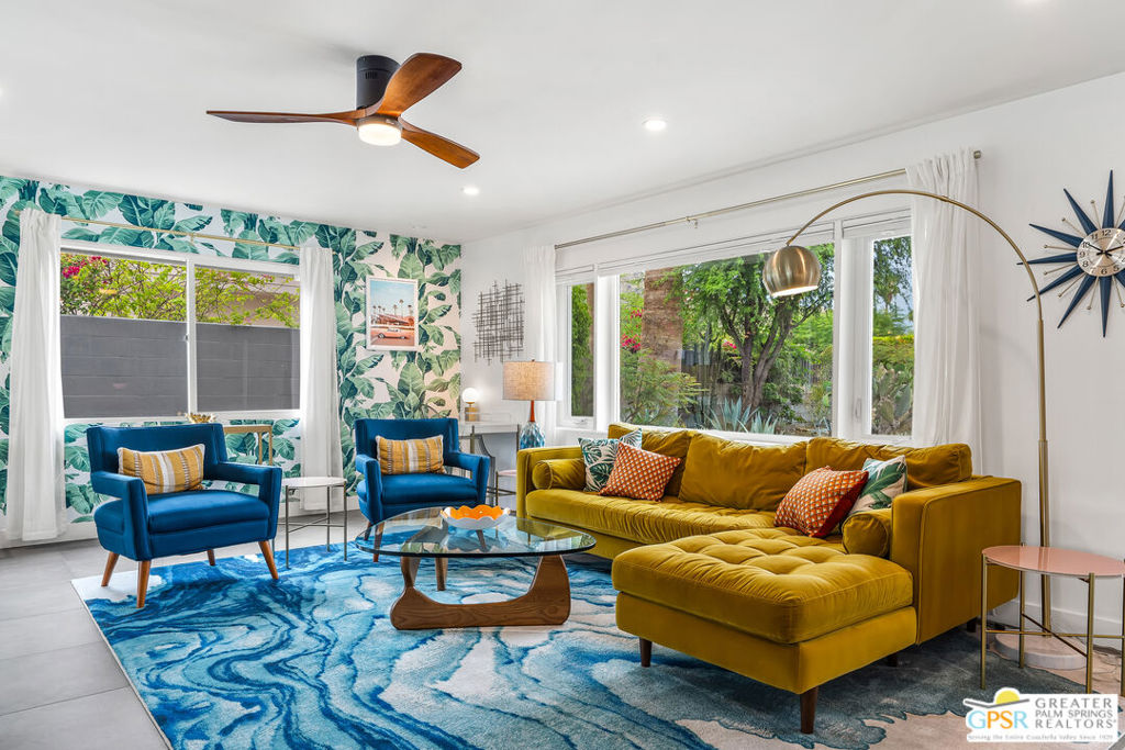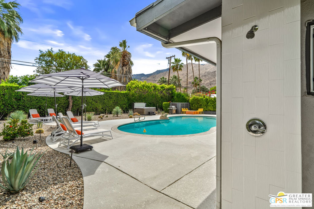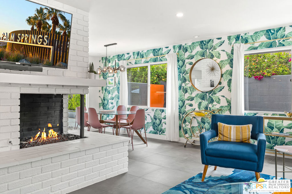Looking for the perfect ready to enjoy, furnished Palm Springs home? Recently renovated, furnishings included and great short term rental potential! Welcome to 281 Ocotillo Avenue, where mid-century allure perfectly blends with modern luxury in the vibrant heart of Palm Springs! Discreetly hidden behind a privacy hedge on a tranquil street in the coveted Tahquitz River Estates neighborhood, this gated home blends architectural character with contemporary sophistication. This three-bedroom, two-bathroom atomic-ranch is an oasis of comfort and style. Picture yourself in the open living area, where iconic mid-century details like the stunning brick fireplace and expansive windows create a warm, inviting atmosphere perfect for cocktail parties or a simple quiet evening unwinding at home. The sleek kitchen features premium appliances with plenty of storage and counter space, perfect for culinary enthusiasts. The primary suite is your private retreat, offering breathtaking views of yard, pool and mountains and its en suite bath boasts a spa-like shower. The two spacious guest bedrooms are equally charming, sharing a beautifully updated guest bathroom. Outside, enjoy the large pool and multiple lounging and dining areas all with stunning mountain views or sit by the outdoor fire pit under the starry night. Modern upgrades abound, including leased solar to help keep your monthly costs to a minimum. As a bonus, over $48k in designer furnishings are included in the sale, allowing you to easily move in and start enjoying your new lifestyle immediately. This home can easily be used as an investment property too since short term vacation rentals are still allowed in this neighborhood. Just minutes from the best dining and shopping in town this home invites you to experience the ultimate in modern living and take advantage of everything this Palm Springs gem has to offer.