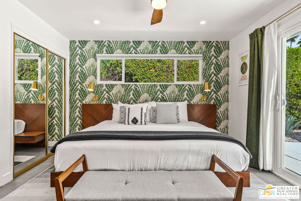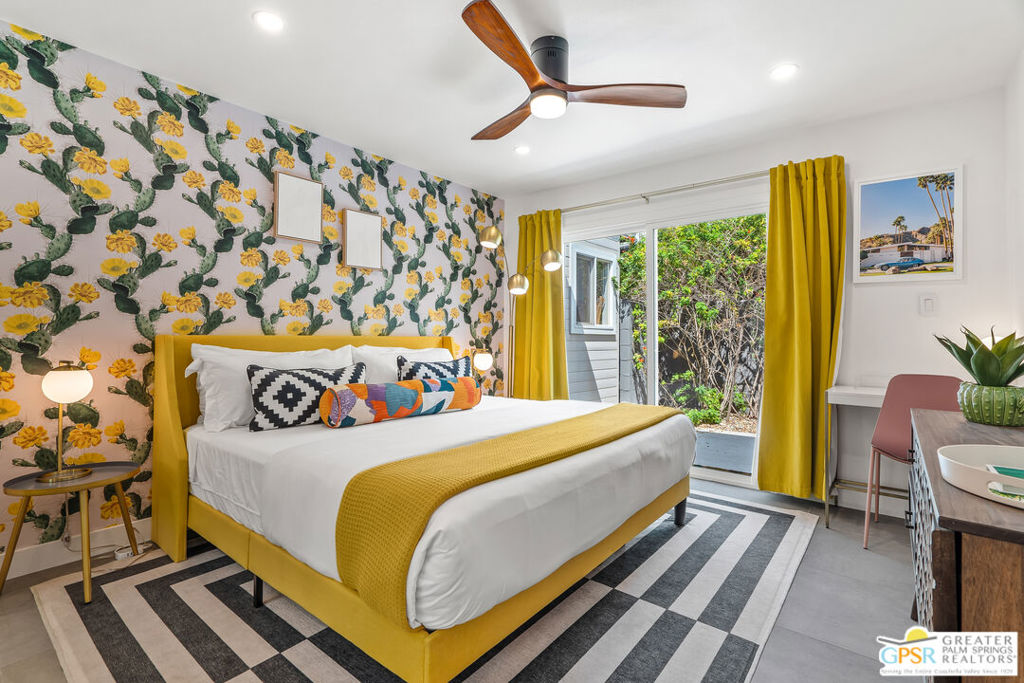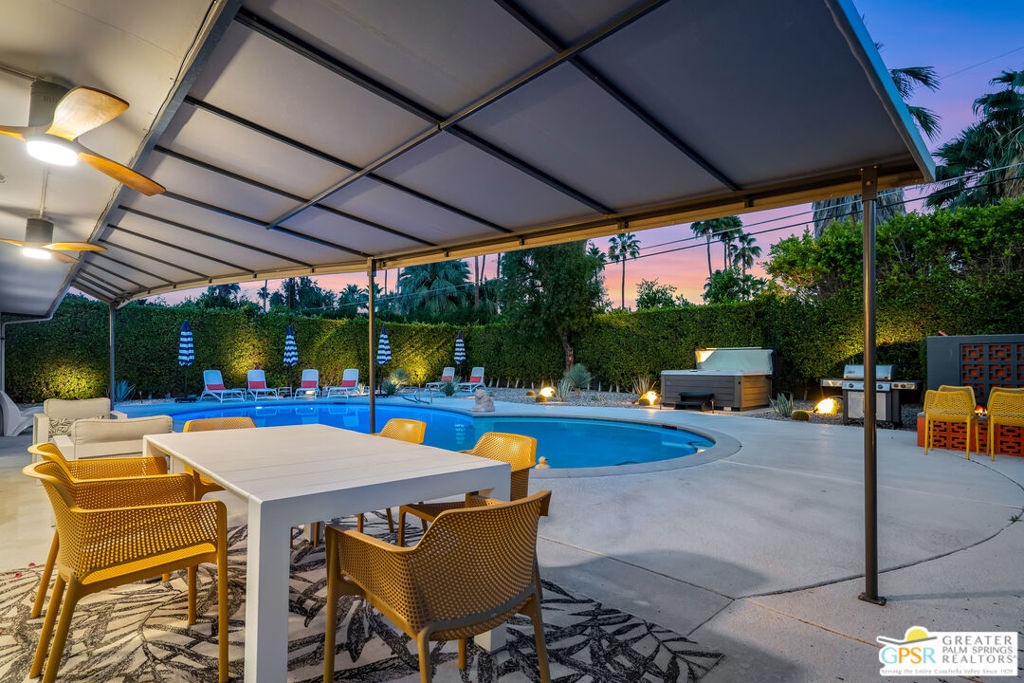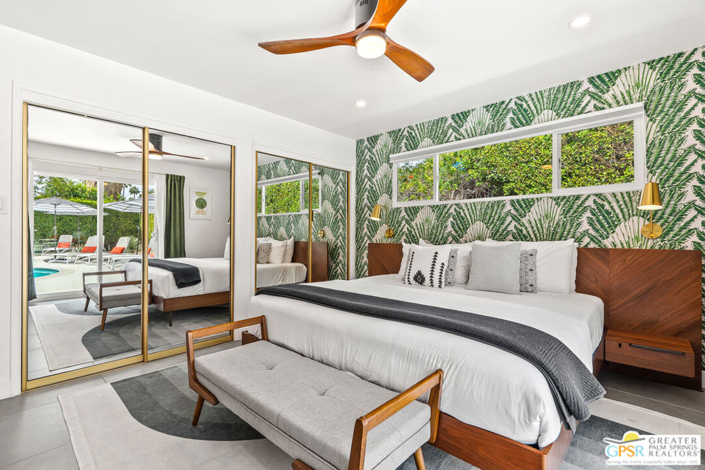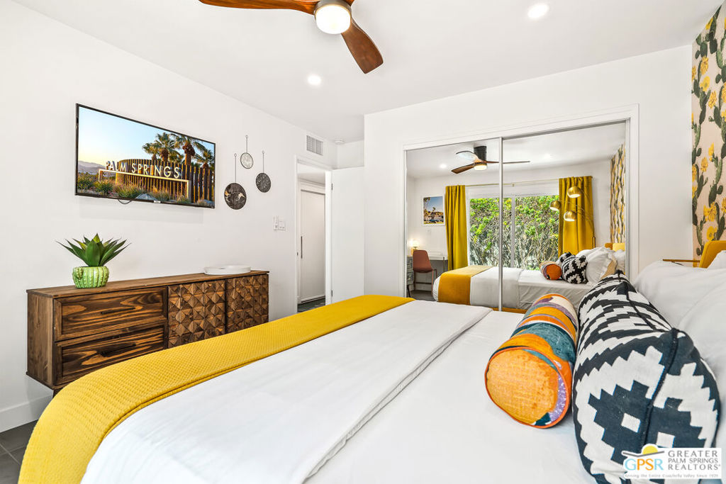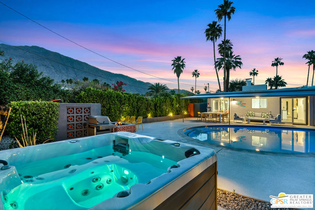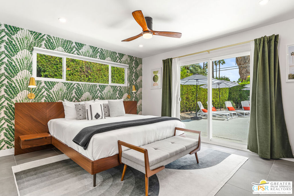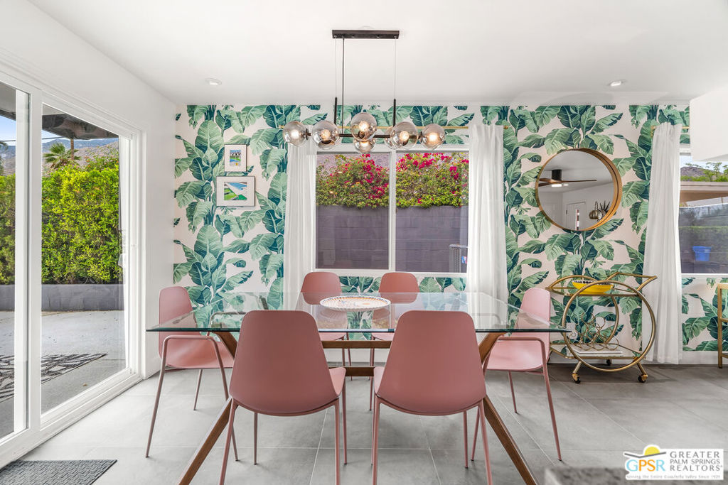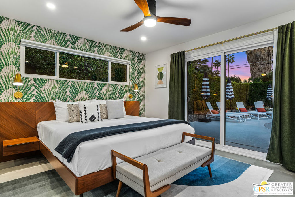 Looking for the perfect ready to enjoy, furnished Palm Springs home? Recently renovated, furnishings included and great short term rental potential! Welcome to 281 Ocotillo Avenue, where mid-century allure perfectly blends with modern luxury in the vibrant heart of Palm Springs! Discreetly hidden behind a privacy hedge on a tranquil street in the coveted Tahquitz River Estates neighborhood, this gated home blends architectural character with contemporary sophistication. This three-bedroom, two-bathroom atomic-ranch is an oasis of comfort and style. Picture yourself in the open living area, where iconic mid-century details like the stunning brick fireplace and expansive windows create a warm, inviting atmosphere perfect for cocktail parties or a simple quiet evening unwinding at home. The sleek kitchen features premium appliances with plenty of storage and counter space, perfect for culinary enthusiasts. The primary suite is your private retreat, offering breathtaking views of yard, pool and mountains and its en suite bath boasts a spa-like shower. The two spacious guest bedrooms are equally charming, sharing a beautifully updated guest bathroom. Outside, enjoy the large pool and multiple lounging and dining areas all with stunning mountain views or sit by the outdoor fire pit under the starry night. Modern upgrades abound, including leased solar to help keep your monthly costs to a minimum. As a bonus, over $48k in designer furnishings are included in the sale, allowing you to easily move in and start enjoying your new lifestyle immediately. This home can easily be used as an investment property too since short term vacation rentals are still allowed in this neighborhood. Just minutes from the best dining and shopping in town this home invites you to experience the ultimate in modern living and take advantage of everything this Palm Springs gem has to offer.