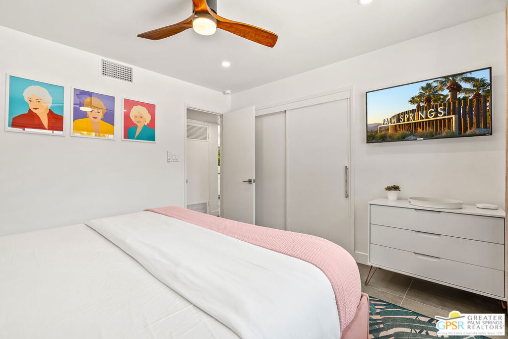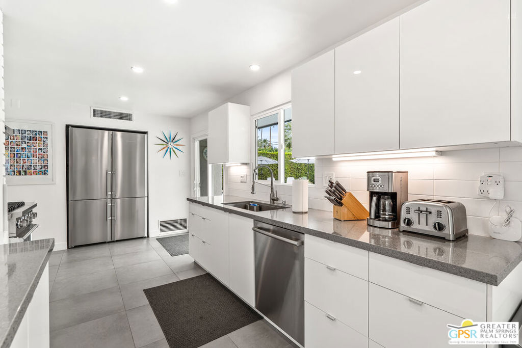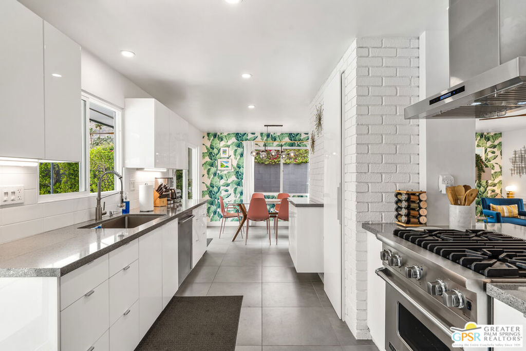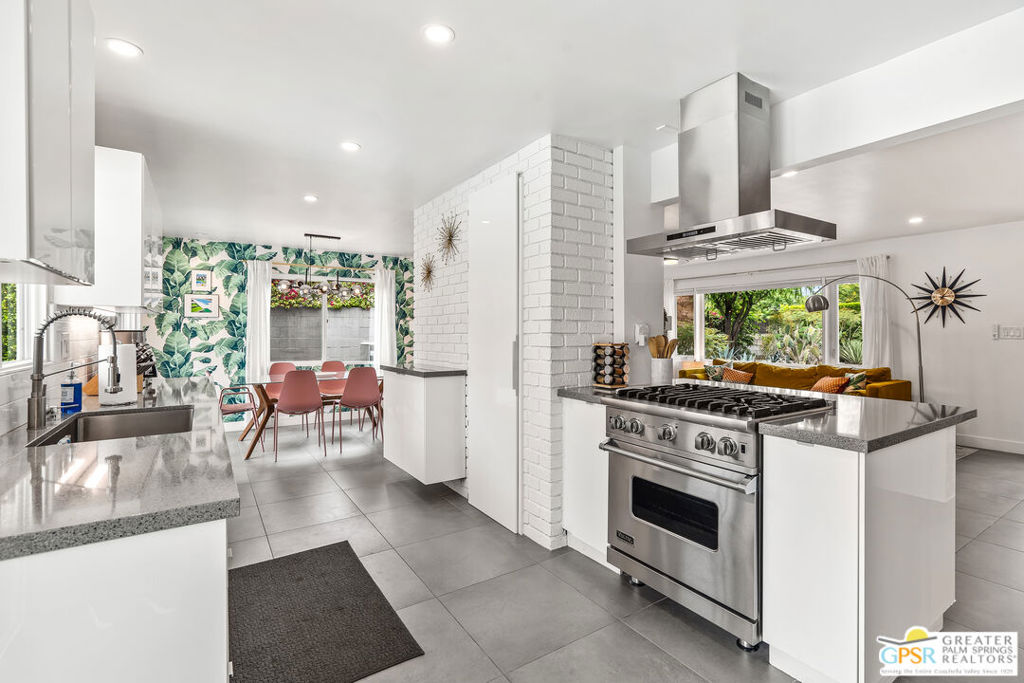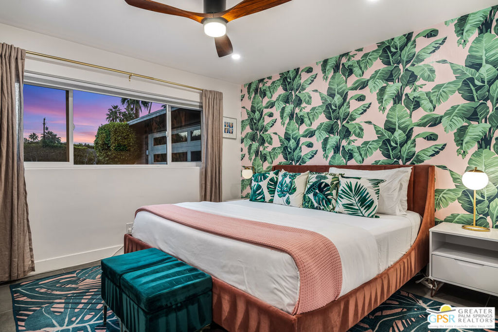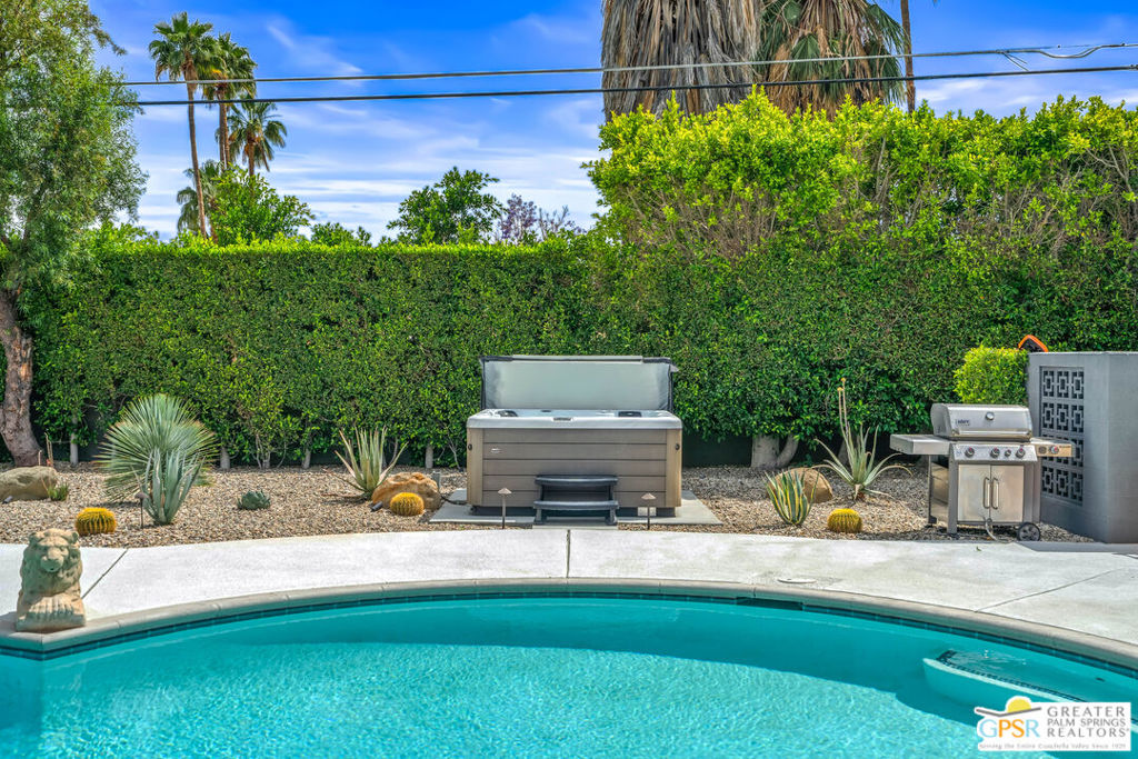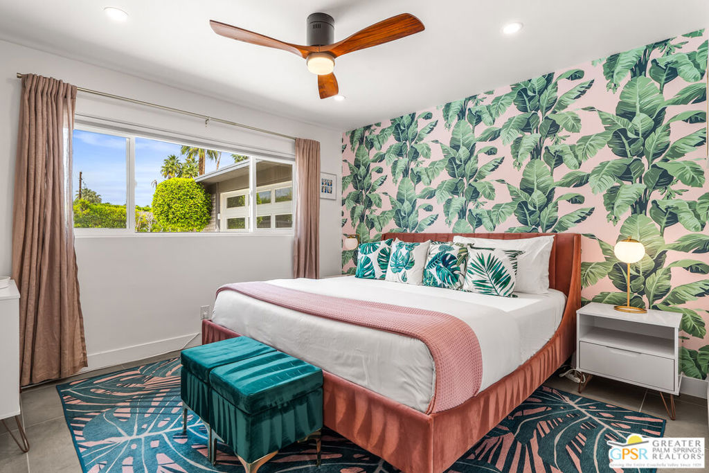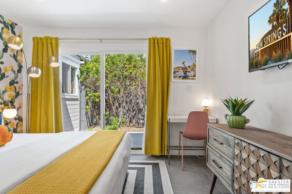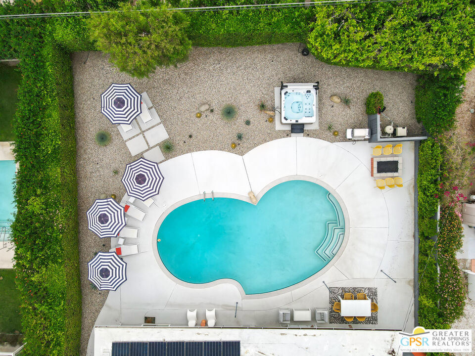 Looking for the perfect ready to enjoy, furnished Palm Springs home? Recently renovated, furnishings included and great short term rental potential! Welcome to 281 Ocotillo Avenue, where mid-century allure perfectly blends with modern luxury in the vibrant heart of Palm Springs! Discreetly hidden behind a privacy hedge on a tranquil street in the coveted Tahquitz River Estates neighborhood, this gated home blends architectural character with contemporary sophistication. This three-bedroom, two-bathroom atomic-ranch is an oasis of comfort and style. Picture yourself in the open living area, where iconic mid-century details like the stunning brick fireplace and expansive windows create a warm, inviting atmosphere perfect for cocktail parties or a simple quiet evening unwinding at home. The sleek kitchen features premium appliances with plenty of storage and counter space, perfect for culinary enthusiasts. The primary suite is your private retreat, offering breathtaking views of yard, pool and mountains and its en suite bath boasts a spa-like shower. The two spacious guest bedrooms are equally charming, sharing a beautifully updated guest bathroom. Outside, enjoy the large pool and multiple lounging and dining areas all with stunning mountain views or sit by the outdoor fire pit under the starry night. Modern upgrades abound, including leased solar to help keep your monthly costs to a minimum. As a bonus, over $48k in designer furnishings are included in the sale, allowing you to easily move in and start enjoying your new lifestyle immediately. This home can easily be used as an investment property too since short term vacation rentals are still allowed in this neighborhood. Just minutes from the best dining and shopping in town this home invites you to experience the ultimate in modern living and take advantage of everything this Palm Springs gem has to offer.