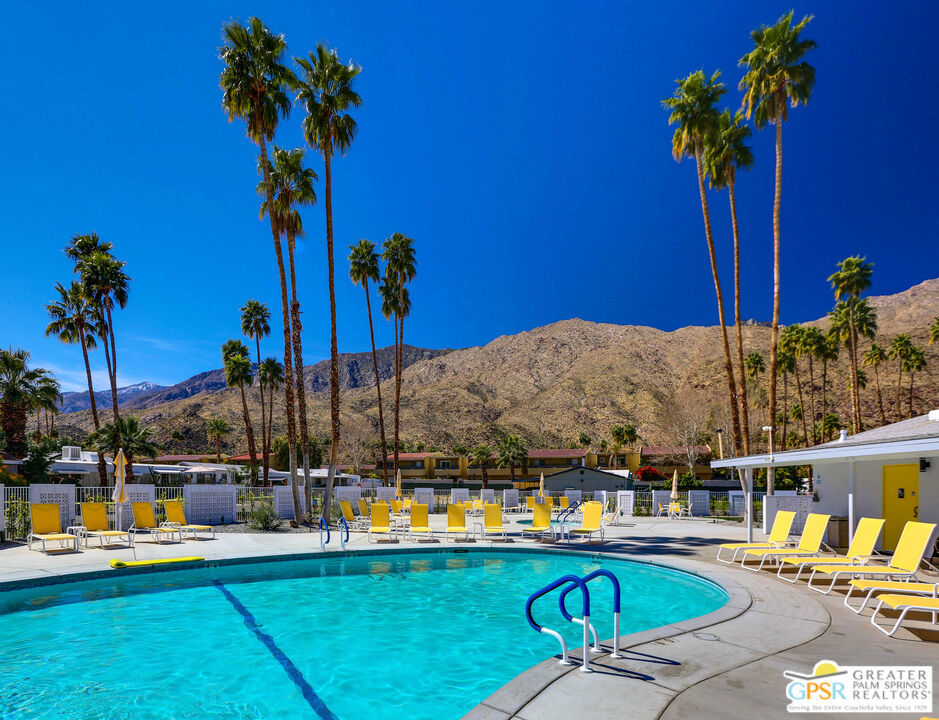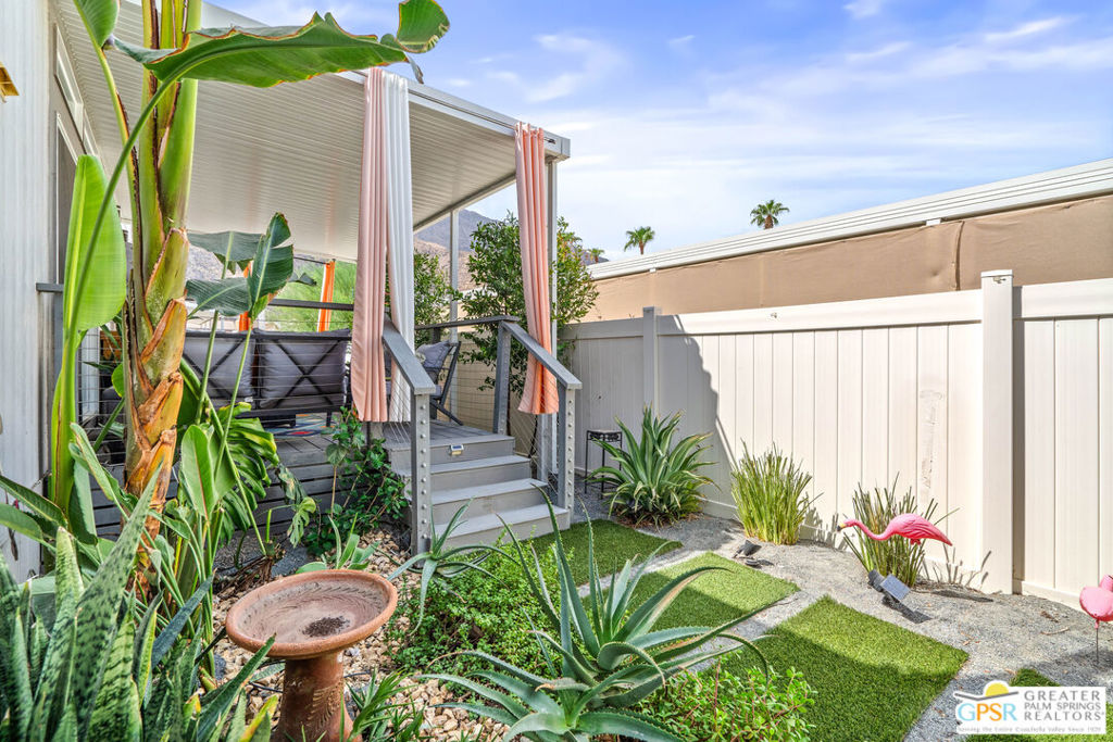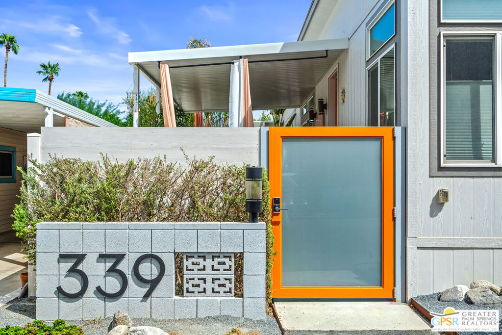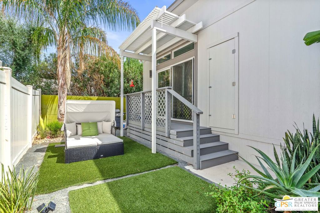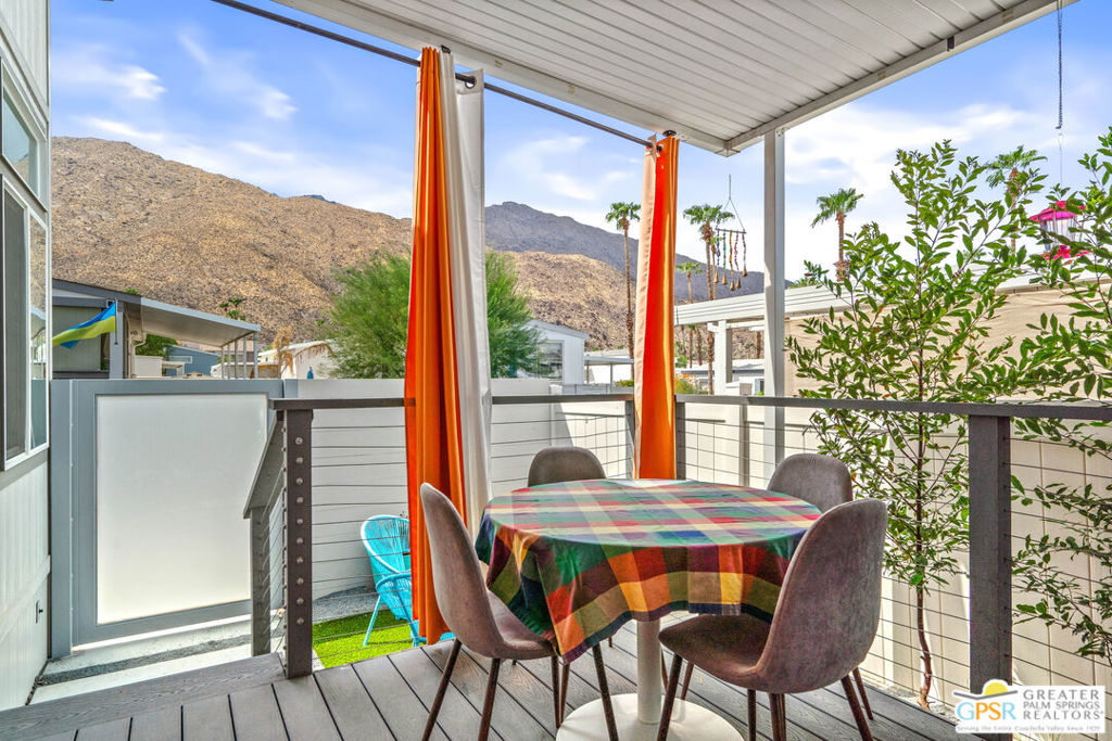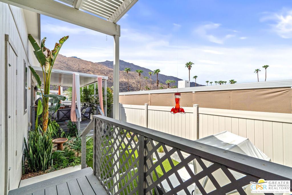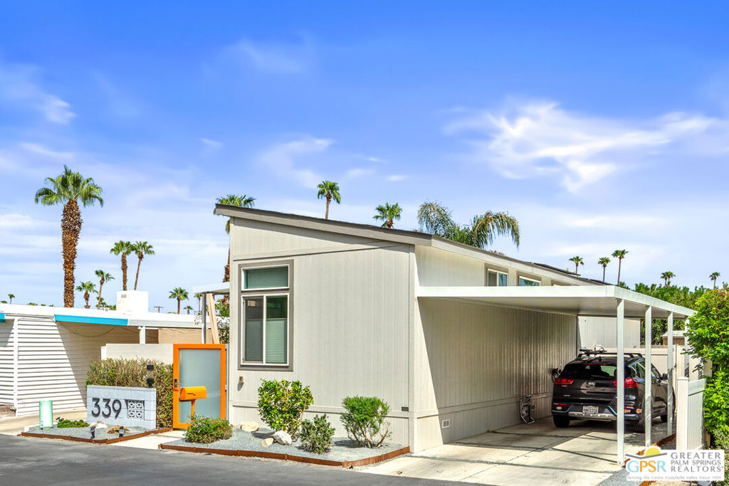 Welcome to 339 Lei Drive, Palm Springs, CA your modern retreat in the heart of the desert. This charming 2-bedroom, 2-bathroom home spans 800 square feet and offers a blend of comfort and style. Inside, you'll find a bright and inviting living space, enhanced by clerestory windows and sliders to the deck. The well-appointed kitchen features ample storage and seamlessly connects to a cozy dining area, making it ideal for both everyday living and entertaining. The primary bedroom boasts an en-suite bathroom, while the second bedroom provides versatile space for guests or a home office. Each room is thoughtfully designed to maximize both comfort and functionality. A stacked washer/dryer is included. Step outside to the covered outdoor deck and your private yard, where you can unwind and take in the breathtaking mountain views. This space is perfect for barbecues, morning coffee, or simply enjoying the serene surroundings. The home also includes 16 owned solar panels, offering significant energy savings and sustainability. Covered parking is attached to the home for convenience. This property is located in a community rich with amenities. Enjoy a dip in the large pool, relax in the spa, stay active in the gym, or socialize in the clubhouse with its game room/lounge. Additional features include a shuffleboard court and a dog park. Experience the best of Palm Springs living at 339 Lei Drive. This home offers modern conveniences, stunning views, and a vibrant community. Don't miss the chance to make it yours!