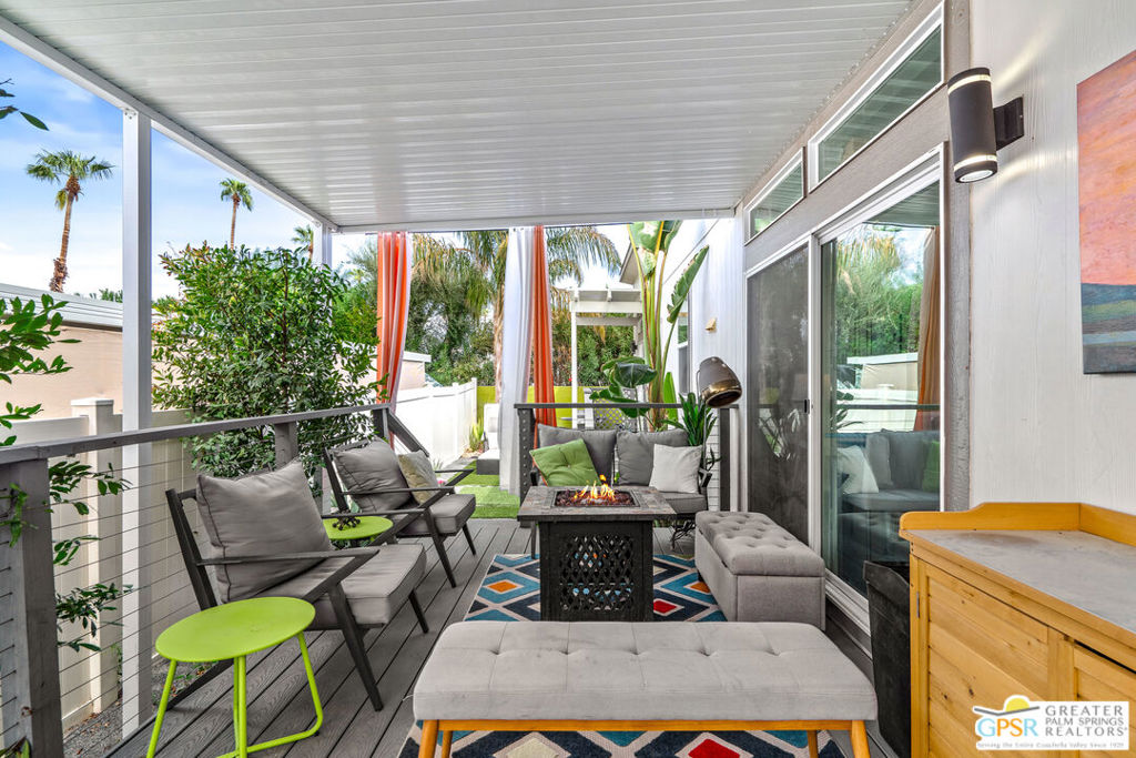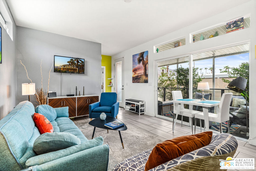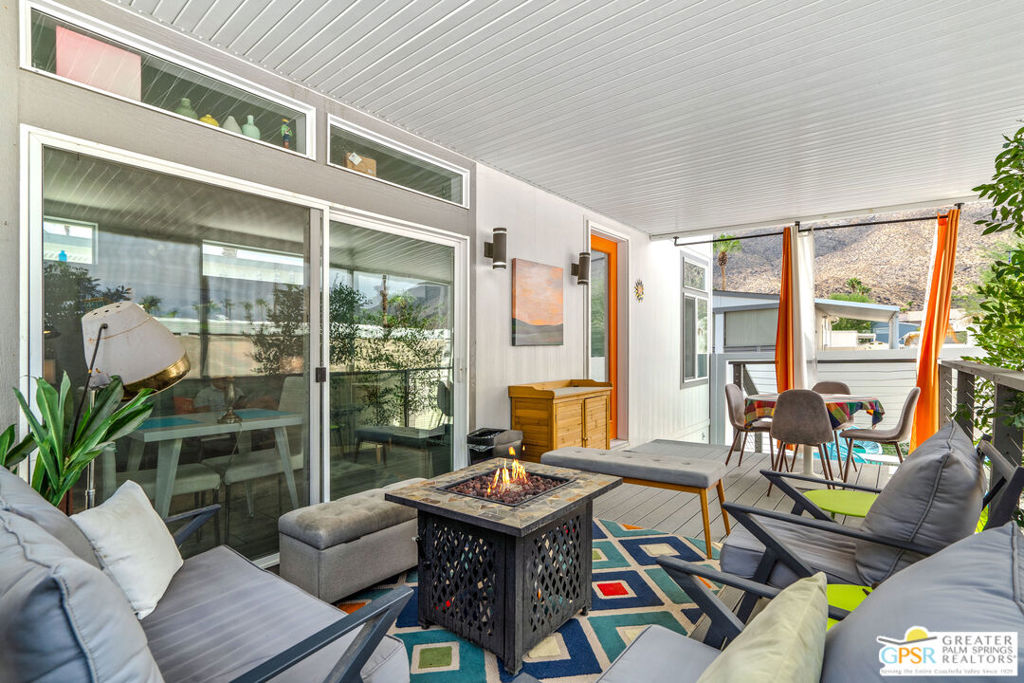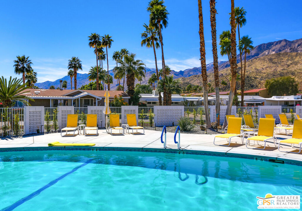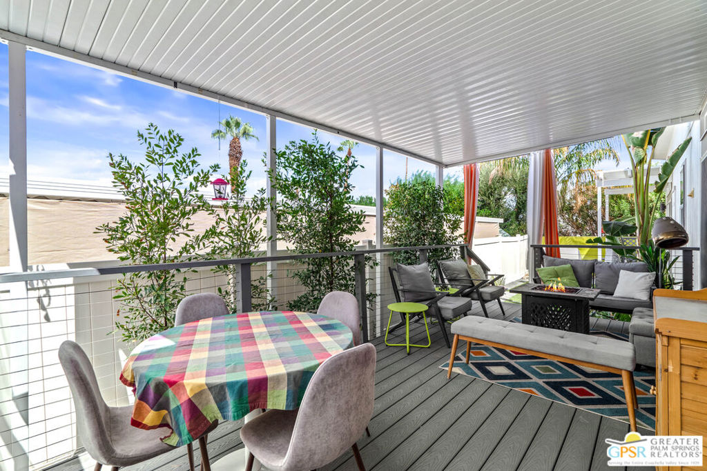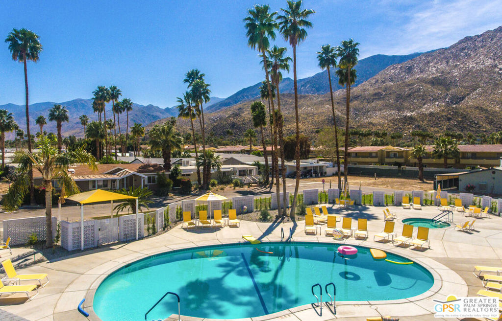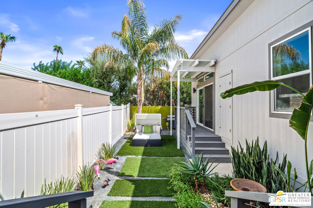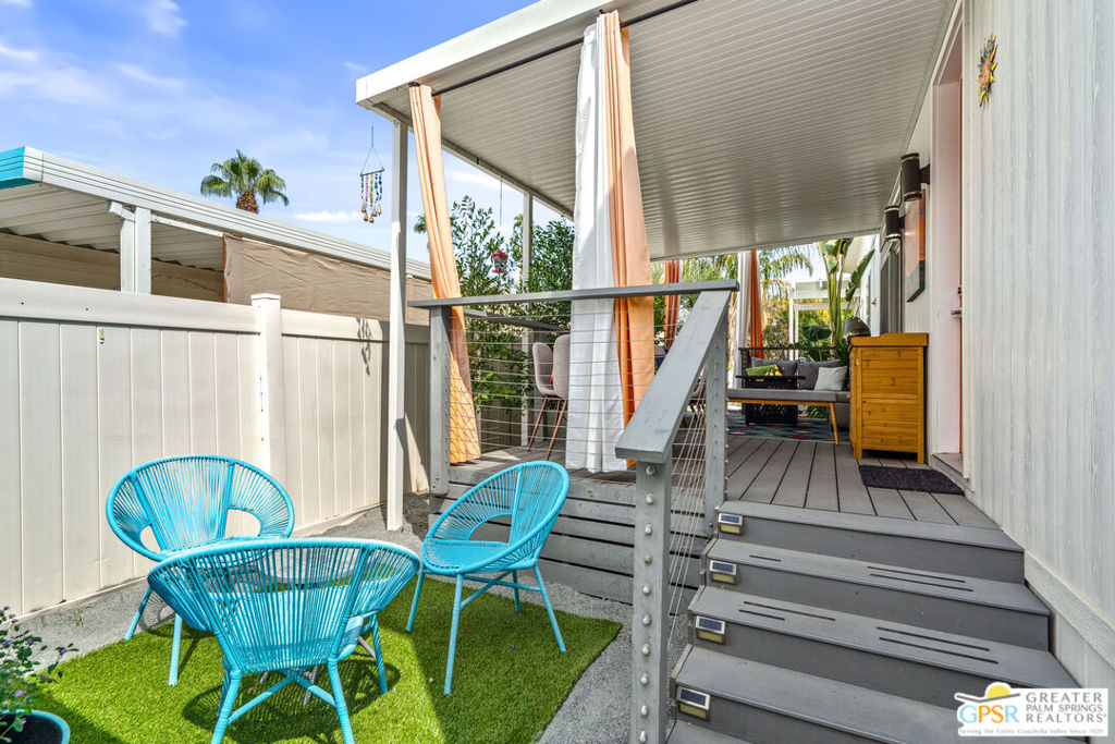 Welcome to 339 Lei Drive, Palm Springs, CA your modern retreat in the heart of the desert. This charming 2-bedroom, 2-bathroom home spans 800 square feet and offers a blend of comfort and style. Inside, you'll find a bright and inviting living space, enhanced by clerestory windows and sliders to the deck. The well-appointed kitchen features ample storage and seamlessly connects to a cozy dining area, making it ideal for both everyday living and entertaining. The primary bedroom boasts an en-suite bathroom, while the second bedroom provides versatile space for guests or a home office. Each room is thoughtfully designed to maximize both comfort and functionality. A stacked washer/dryer is included. Step outside to the covered outdoor deck and your private yard, where you can unwind and take in the breathtaking mountain views. This space is perfect for barbecues, morning coffee, or simply enjoying the serene surroundings. The home also includes 16 owned solar panels, offering significant energy savings and sustainability. Covered parking is attached to the home for convenience. This property is located in a community rich with amenities. Enjoy a dip in the large pool, relax in the spa, stay active in the gym, or socialize in the clubhouse with its game room/lounge. Additional features include a shuffleboard court and a dog park. Experience the best of Palm Springs living at 339 Lei Drive. This home offers modern conveniences, stunning views, and a vibrant community. Don't miss the chance to make it yours!