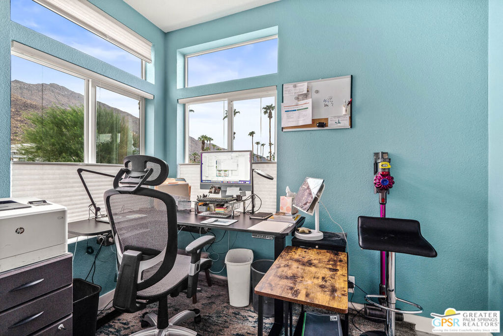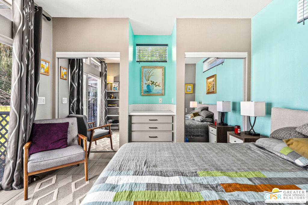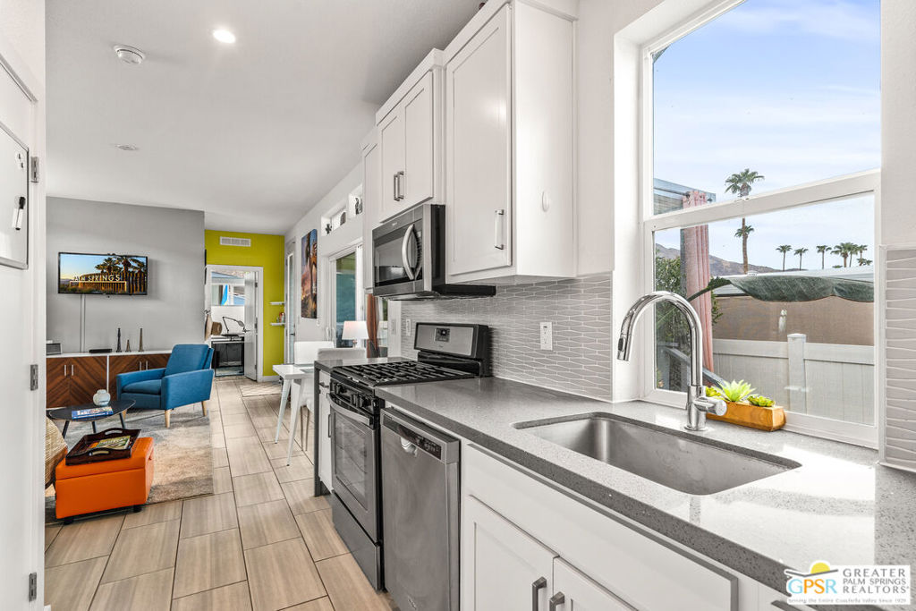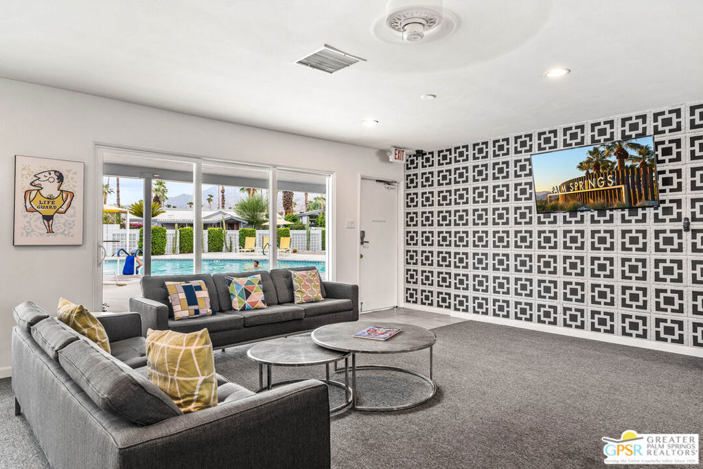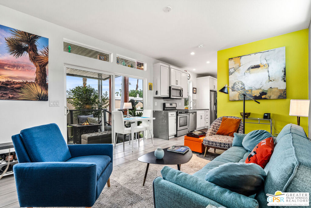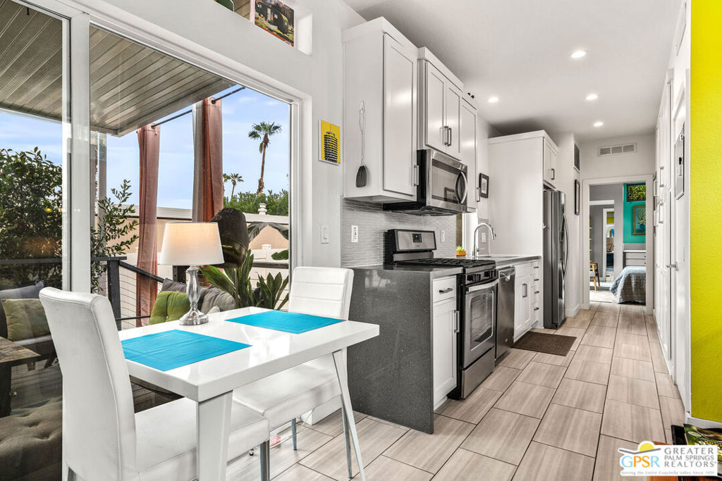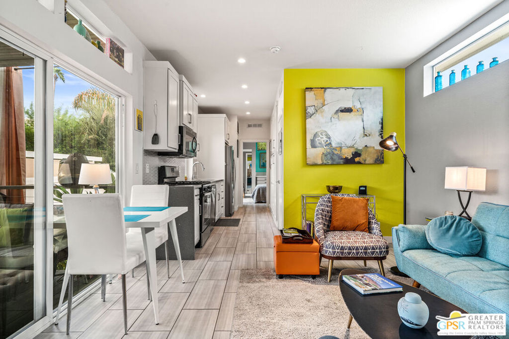 Welcome to 339 Lei Drive, Palm Springs, CA your modern retreat in the heart of the desert. This charming 2-bedroom, 2-bathroom home spans 800 square feet and offers a blend of comfort and style. Inside, you'll find a bright and inviting living space, enhanced by clerestory windows and sliders to the deck. The well-appointed kitchen features ample storage and seamlessly connects to a cozy dining area, making it ideal for both everyday living and entertaining. The primary bedroom boasts an en-suite bathroom, while the second bedroom provides versatile space for guests or a home office. Each room is thoughtfully designed to maximize both comfort and functionality. A stacked washer/dryer is included. Step outside to the covered outdoor deck and your private yard, where you can unwind and take in the breathtaking mountain views. This space is perfect for barbecues, morning coffee, or simply enjoying the serene surroundings. The home also includes 16 owned solar panels, offering significant energy savings and sustainability. Covered parking is attached to the home for convenience. This property is located in a community rich with amenities. Enjoy a dip in the large pool, relax in the spa, stay active in the gym, or socialize in the clubhouse with its game room/lounge. Additional features include a shuffleboard court and a dog park. Experience the best of Palm Springs living at 339 Lei Drive. This home offers modern conveniences, stunning views, and a vibrant community. Don't miss the chance to make it yours!