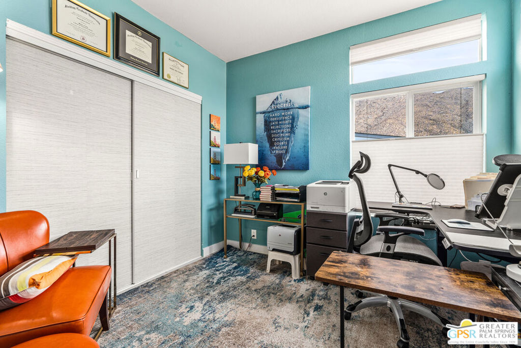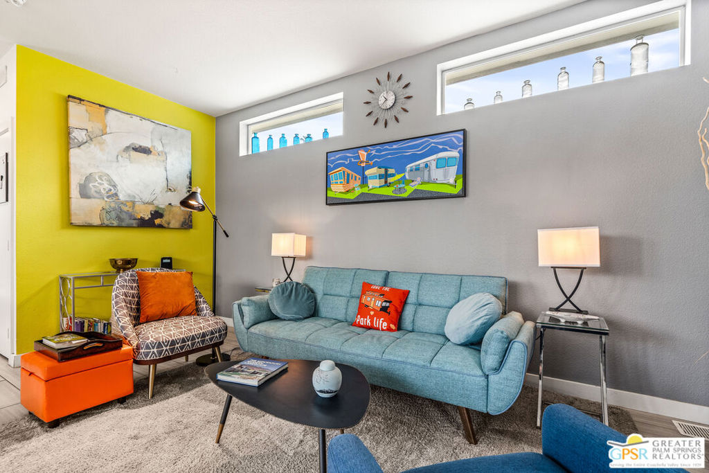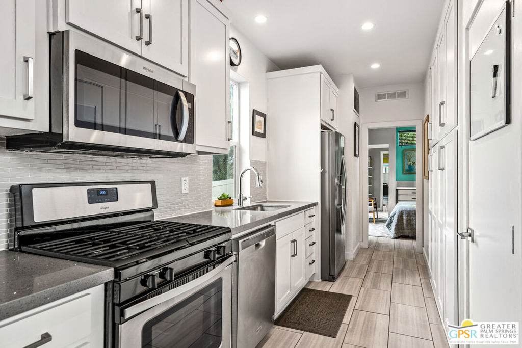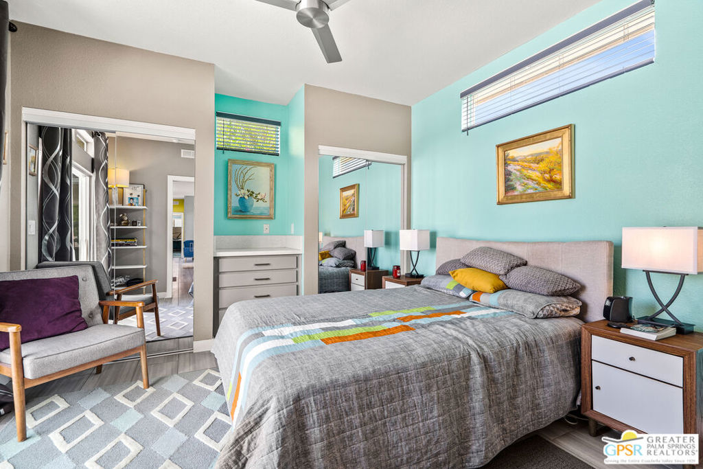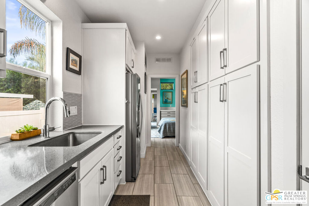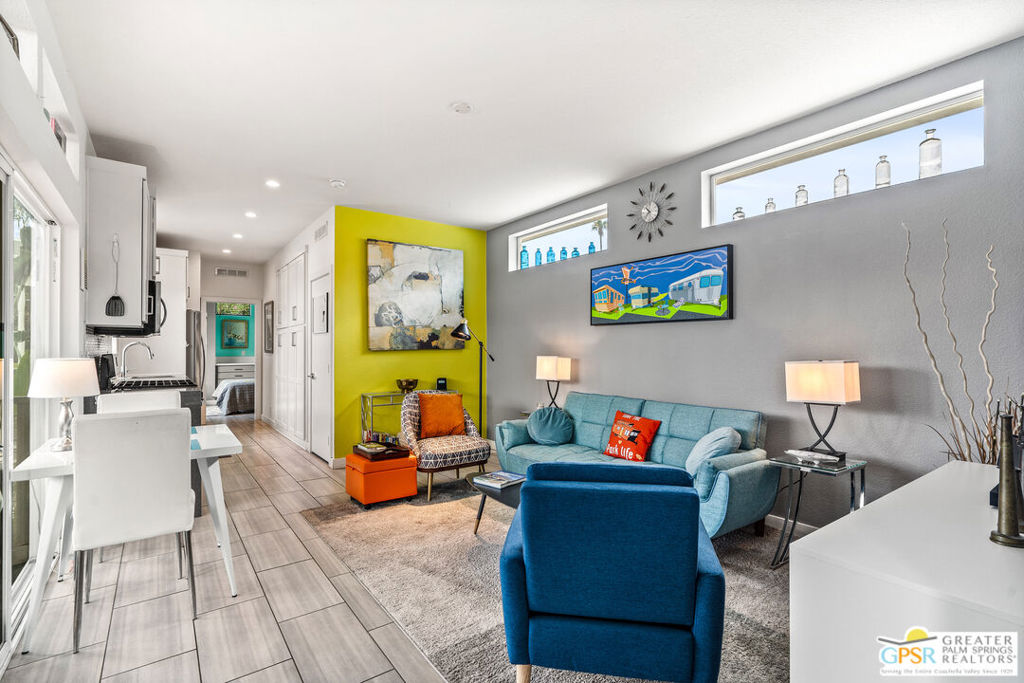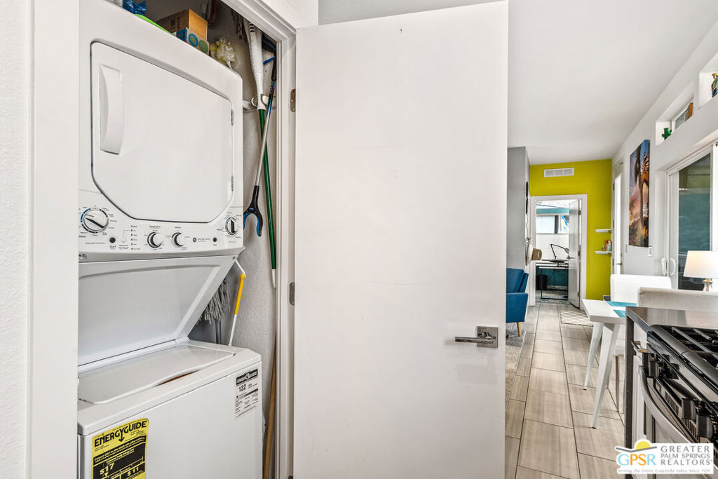 Welcome to 339 Lei Drive, Palm Springs, CA your modern retreat in the heart of the desert. This charming 2-bedroom, 2-bathroom home spans 800 square feet and offers a blend of comfort and style. Inside, you'll find a bright and inviting living space, enhanced by clerestory windows and sliders to the deck. The well-appointed kitchen features ample storage and seamlessly connects to a cozy dining area, making it ideal for both everyday living and entertaining. The primary bedroom boasts an en-suite bathroom, while the second bedroom provides versatile space for guests or a home office. Each room is thoughtfully designed to maximize both comfort and functionality. A stacked washer/dryer is included. Step outside to the covered outdoor deck and your private yard, where you can unwind and take in the breathtaking mountain views. This space is perfect for barbecues, morning coffee, or simply enjoying the serene surroundings. The home also includes 16 owned solar panels, offering significant energy savings and sustainability. Covered parking is attached to the home for convenience. This property is located in a community rich with amenities. Enjoy a dip in the large pool, relax in the spa, stay active in the gym, or socialize in the clubhouse with its game room/lounge. Additional features include a shuffleboard court and a dog park. Experience the best of Palm Springs living at 339 Lei Drive. This home offers modern conveniences, stunning views, and a vibrant community. Don't miss the chance to make it yours!