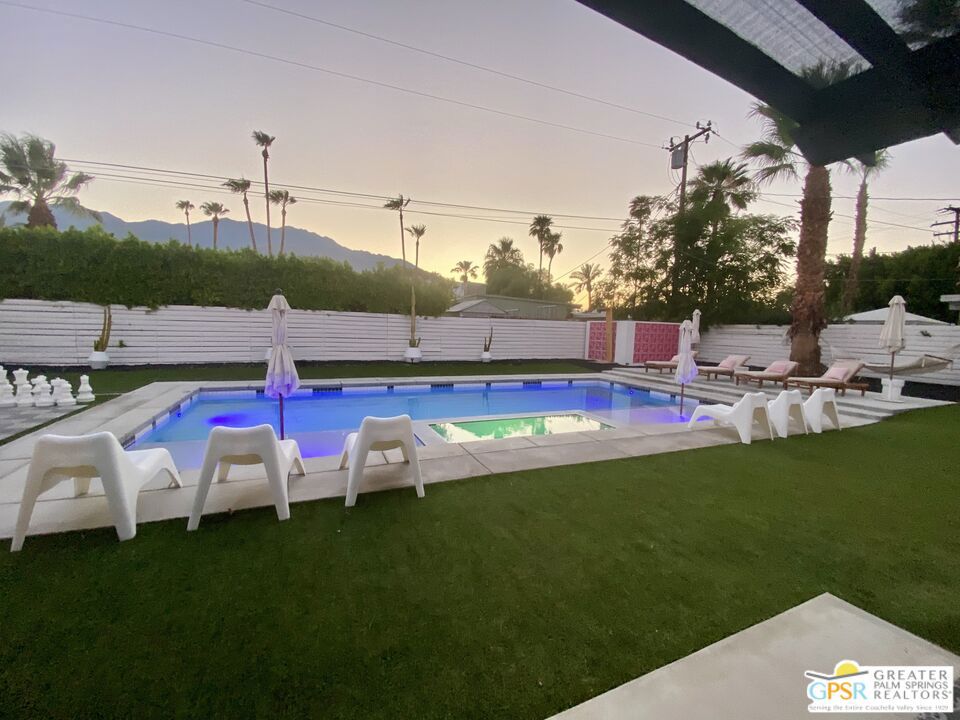 Looking for the perfect ready to enjoy, furnished Palm Springs home? Recently renovated, furnishings included and great short term rental potential! Welcome to 631 S El Cielo, where mid-century allure perfectly blends with modern luxury in the vibrant heart of Palm Springs! This Mid-century Modern gem, with owned solar, sits in the coveted Little Beverly Hills neighborhood of central Palm Springs. This home blends architectural character with contemporary sophistication and has the perfect layout for both indoor/outdoor entertaining. The home features two separate living rooms both flanked by two guest bedrooms (4 bedrooms in total), ideal for multiple families to enjoy their privacy while also enjoying the common entertaining spaces. This backyard boasts a large pool and spa, bocce ball court, fire pit, life-sized chess board and a covered patio complete with a built-in BBQ with breathtaking panoramic views of the surrounding mountains. Located close to a public park which includes a dog park and pickleball courts. This home is an especially distinctive offering for those looking for an expansive primary residence, perfect weekend vacation home or a short term rental - investment property!