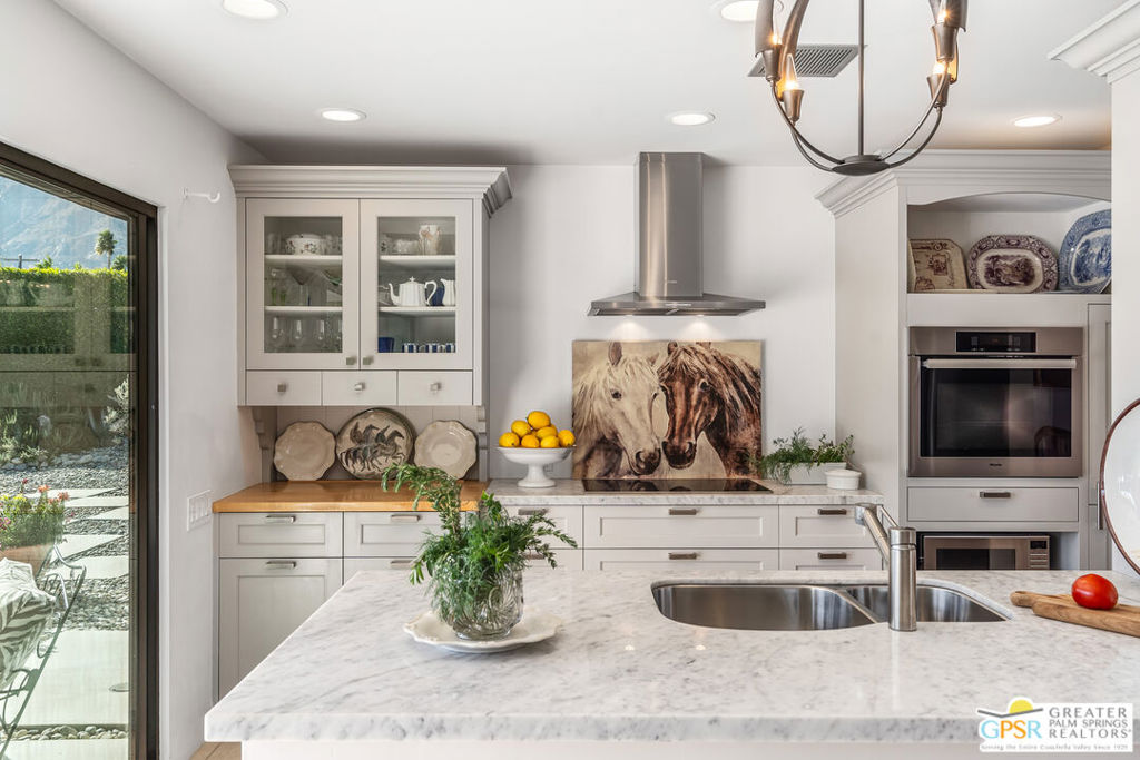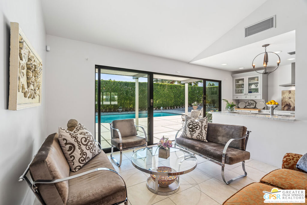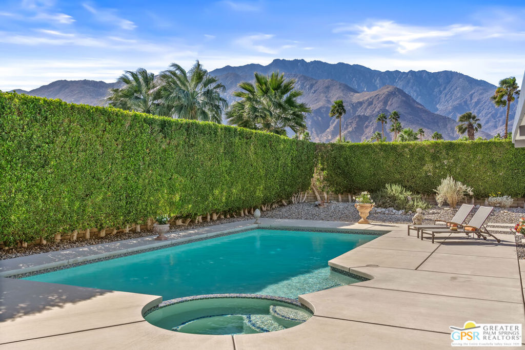 Welcome to 805 El Cid, a stunning oasis nestled in the heart of Palm Springs, CA. This extensively renovated home offers a perfect blend of modern elegance and serene desert living. Spanning 1,462 square feet, this residence features three spacious bedrooms and two beautifully updated bathrooms, providing ample space for relaxation and comfort. The heart of the home is the custom kitchen, equipped with top-of-the-line appliances and meticulously crafted cabinets, making it a culinary enthusiast's dream. Large Fleetwood doors have been thoughtfully replaced, inviting abundant natural light and providing the indoor/outdoor living factor. Step outside to discover your private sanctuary on a generous 10,019-square-foot lot. The manicured backyard is an entertainer's paradise, complete with a sparkling pool and spa, perfect for unwinding under the sun and enjoying spectacular mountain views. The private outdoor spaces offers tranquility and privacy, creating an ideal escape from the hustle and bustle of everyday life. A 2 car insulated garage provides parking and extra storage. This home is truly ready to enjoy, offering a unique opportunity to experience the best of Palm Springs living. Lovingly renovated, maintained and gently lived in by part time owners, this home has never been a rental. Don't miss the chance to make 805 El Cid your own personal retreat.