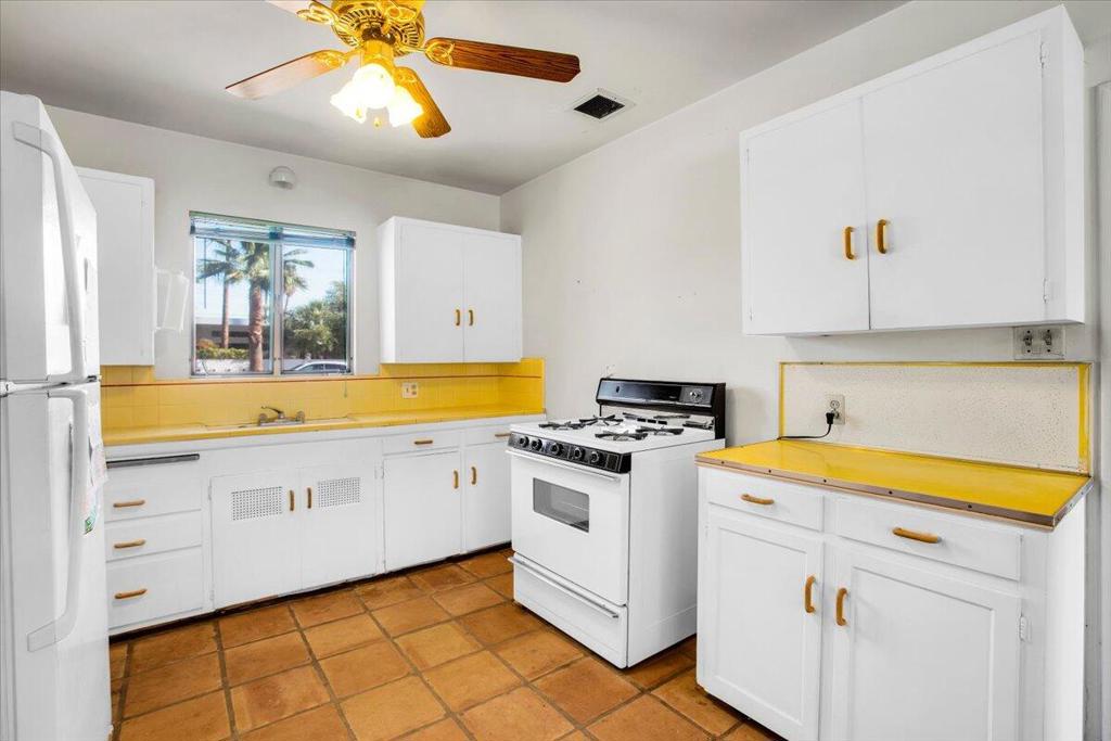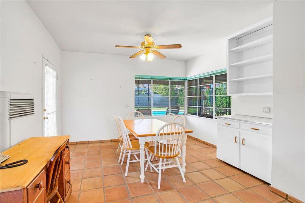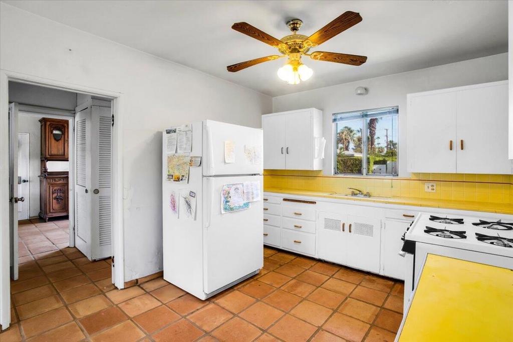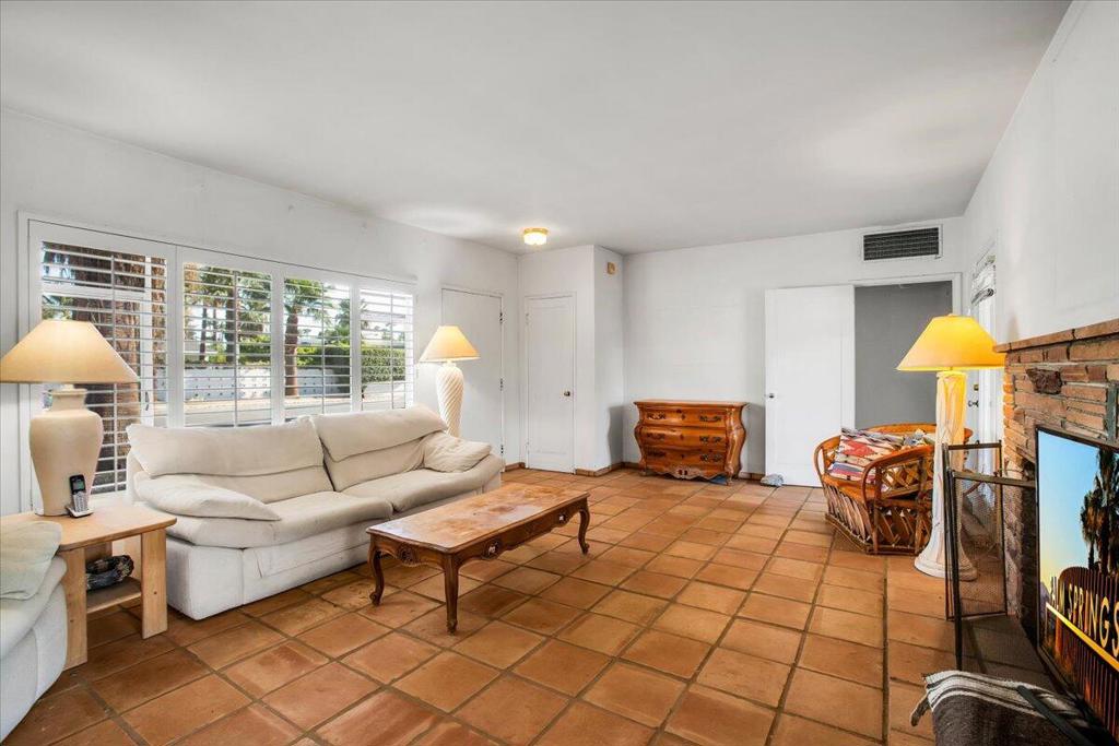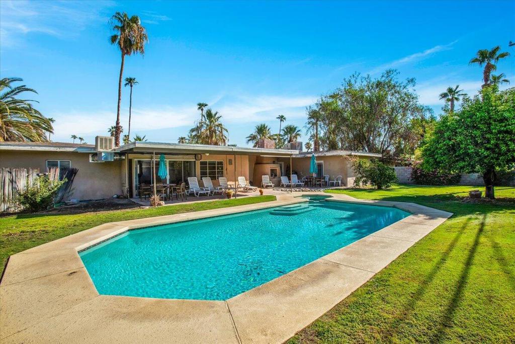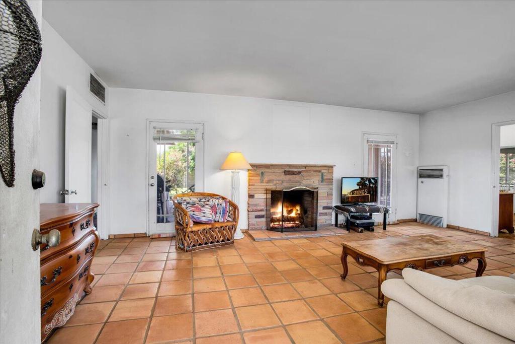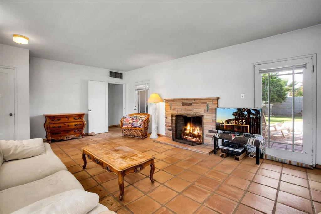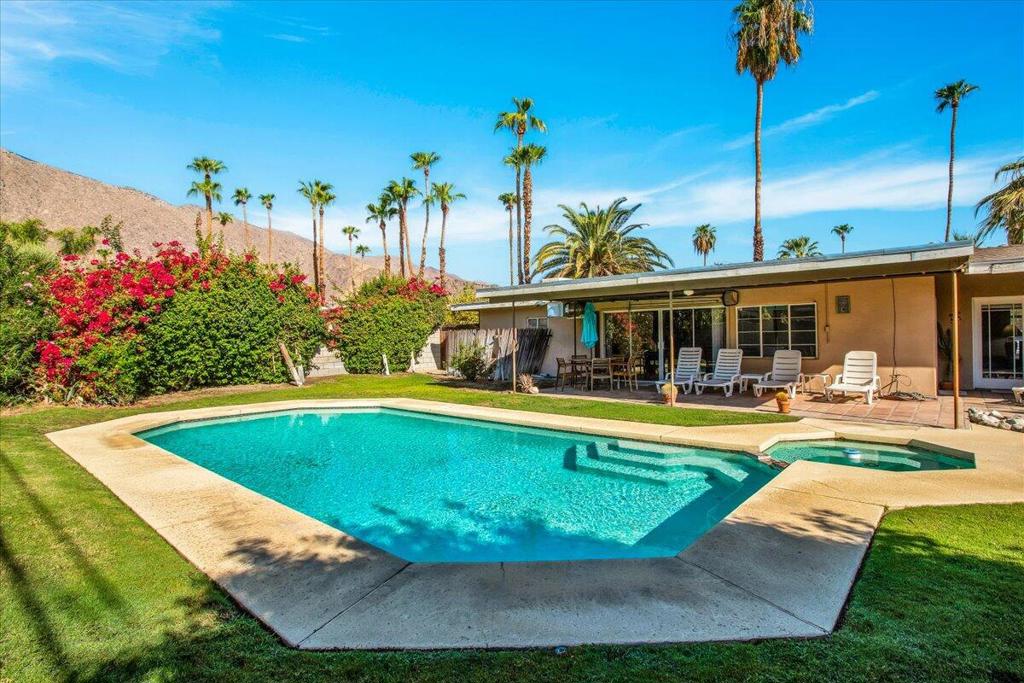 Nestled on a quiet street in a highly desirable neighborhood just moments from downtown Palm Springs, this 1950s gem offers the perfect blend of vintage charm and endless potential.The home features two bedrooms with original built-in closets, a spacious living room with an eye-catching original stacked stone fireplace, and an authentic 1950s kitchen with a generous eating area. The breezeway, which once connected the garage to the main house, has been converted into a versatile bonus room, perfect for an office, studio, or additional living space.Outside, a sprawling backyard awaits, complete with stunning mountain views, a serene pool and spa, a charming outdoor kiva, and a covered patio--ideal for entertaining or simply soaking up the Palm Springs sun. With ample room for expansion, this property offers a unique opportunity for those who desire a large lot in one of the more prestigious low wind areas of South Palm Springs, close to town yet tucked away in a peaceful setting.While this home does need some TLC, the price reflects its current condition and the incredible potential for customization and enhancement. Whether you're looking to preserve its mid-century appeal or create a modern oasis, this is the perfect canvas for your vision.Come explore the possibilities of this one-of-a-kind property and make it your own!
